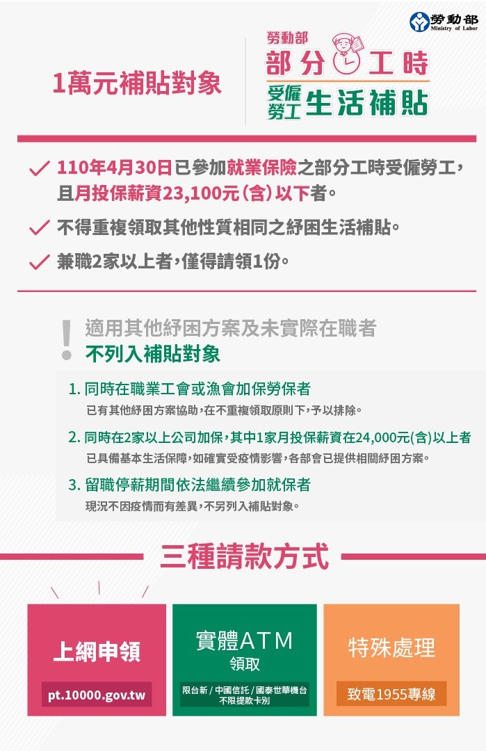 勞動部因應嚴重特殊傳染性肺炎影響辦理部分工時受僱勞工生活補貼計畫