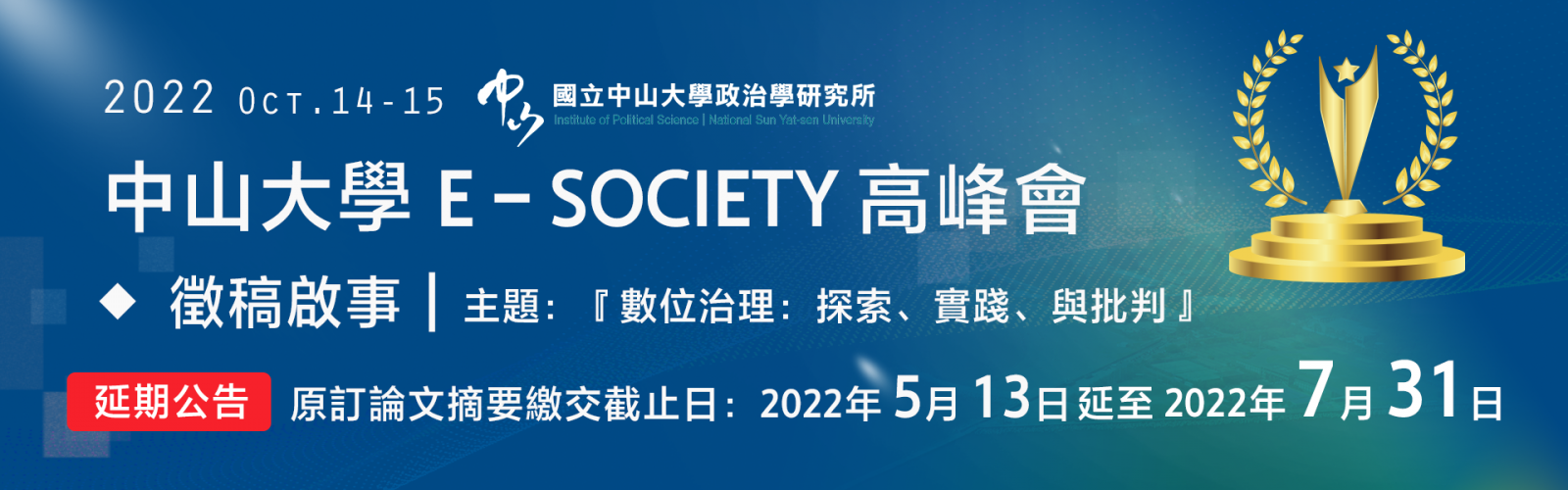國立中山大學政治學研究所將在2022年10月14-15日舉辦每兩年一次的E-society高峰會。