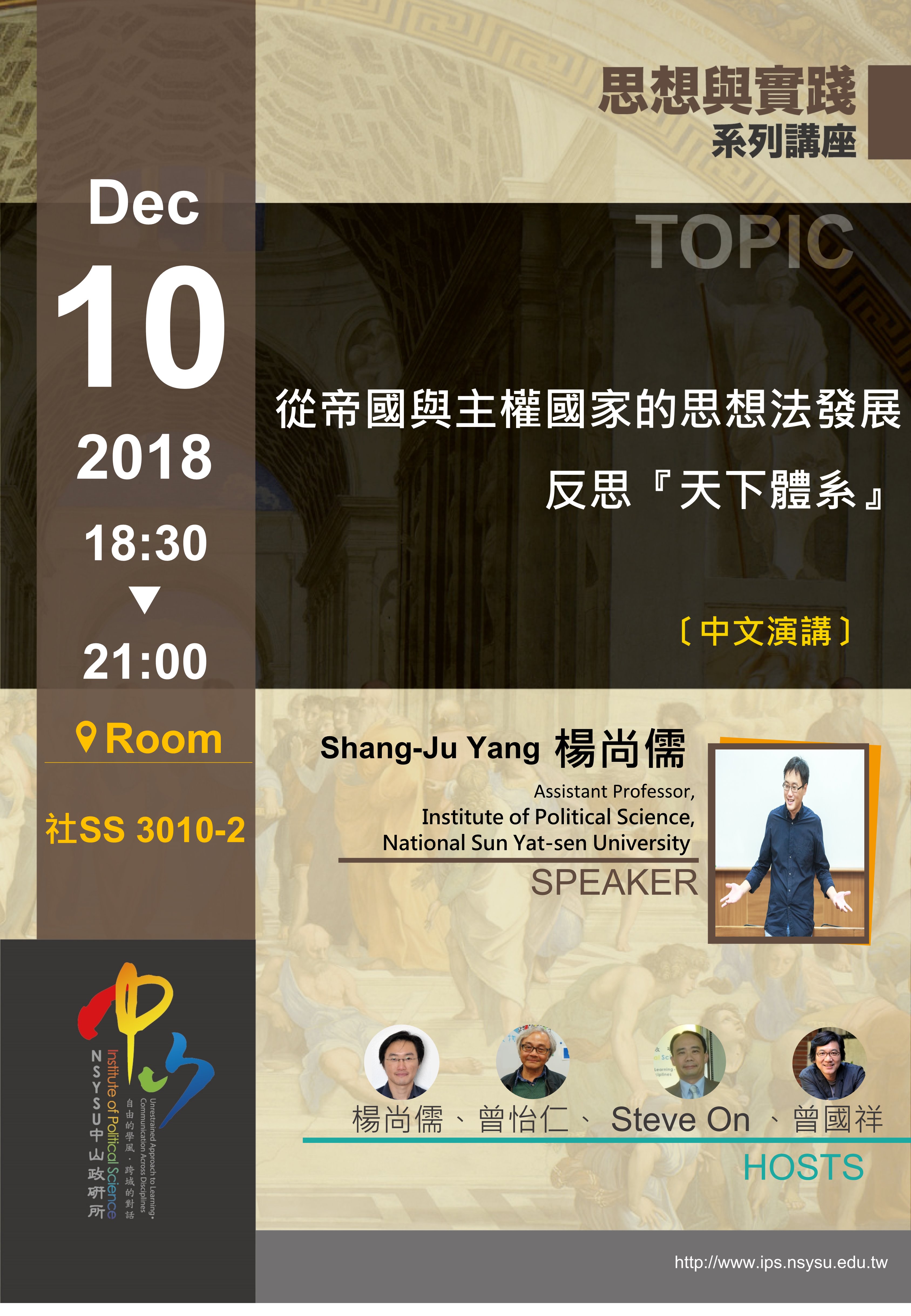 講題:從帝國與主權國家的思想法發展反思「天下體系」