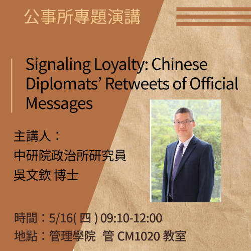 講題:Signaling Loyalty: Chinese Diplomats’ Retweets of Official Messages