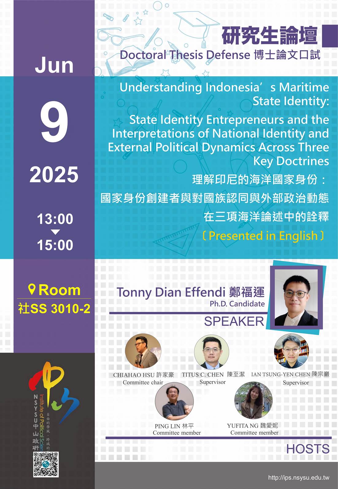 【學生論壇】博士論文口試:理解印尼的海洋國家身份:國家身份創建者與對國族認同與外部政治動 態在三項海洋論述中的詮釋