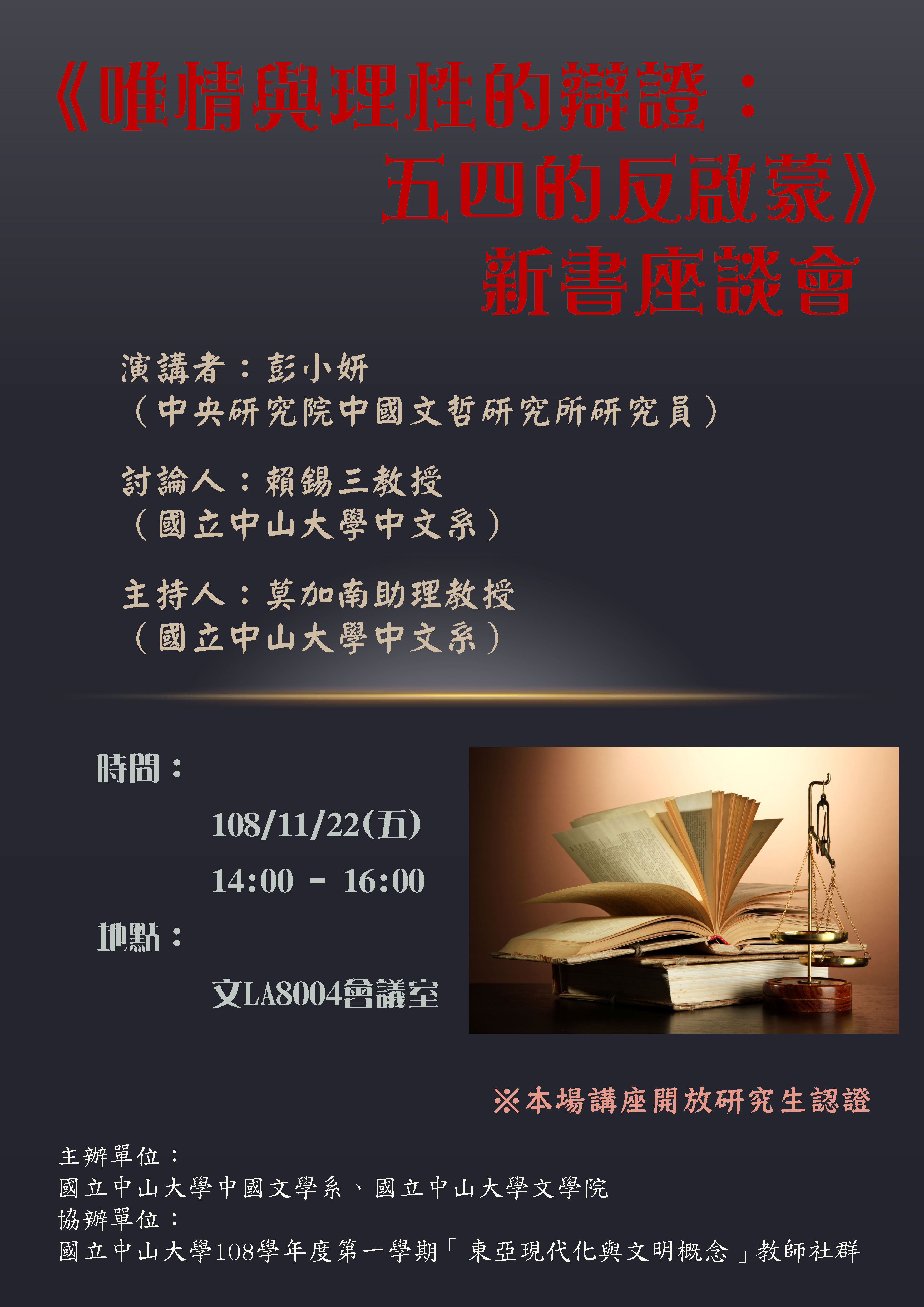 演講題目:《唯情與理性的辯證:五四的反啟蒙》新書座談會