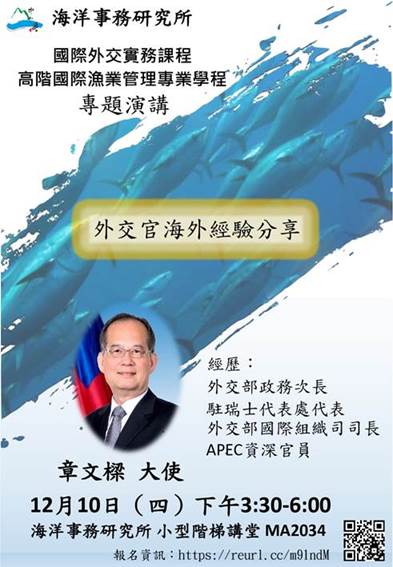 主講人:章文樑 (曾任外交部政務次長、駐瑞士代表處代表、外交部國際組織司司長、APEC資深官員)