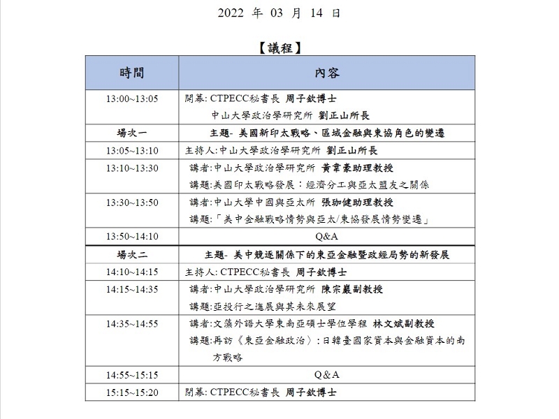 主辦單位:太平洋經濟合作理事會中華民國委員會