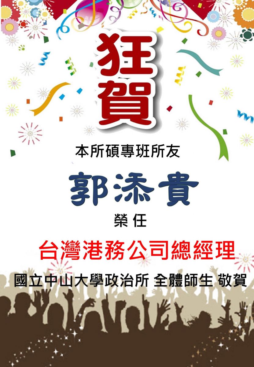 恭賀本所郭添貴所友榮任台灣港務公司總經理