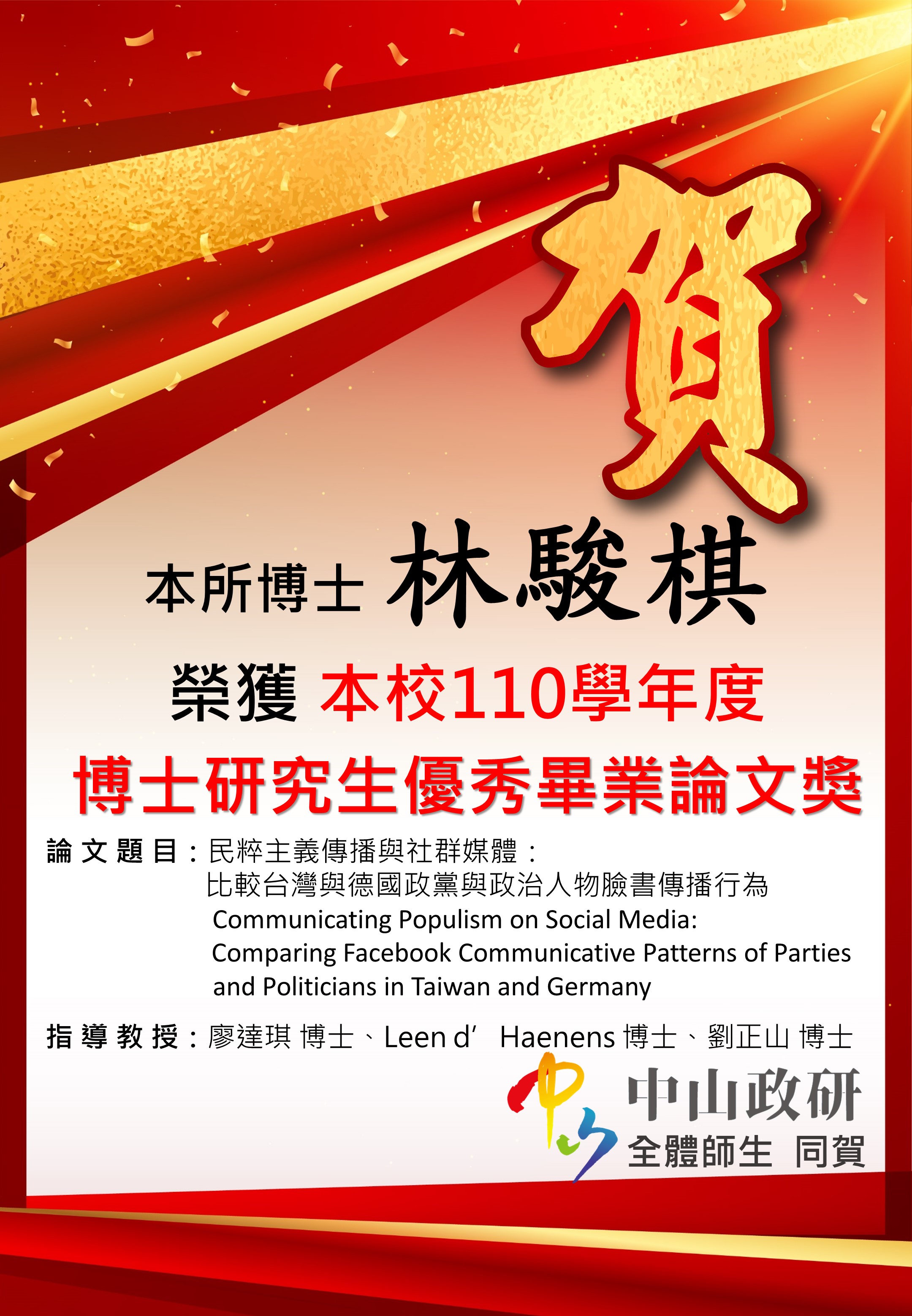 指導教授:廖達琪 博士、Leen d’Haenens 博士、劉正山 博士