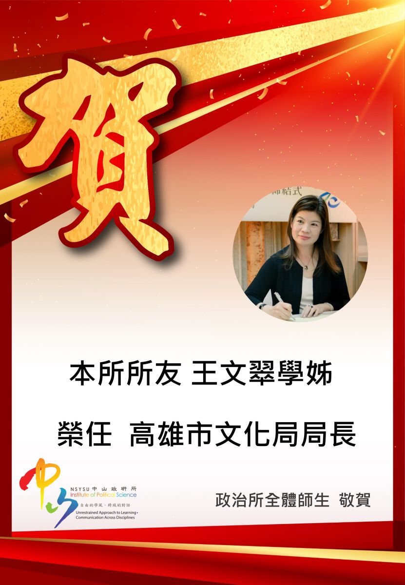 恭賀本所碩專班所友王文翠學姊榮任高雄市府文化局局長
