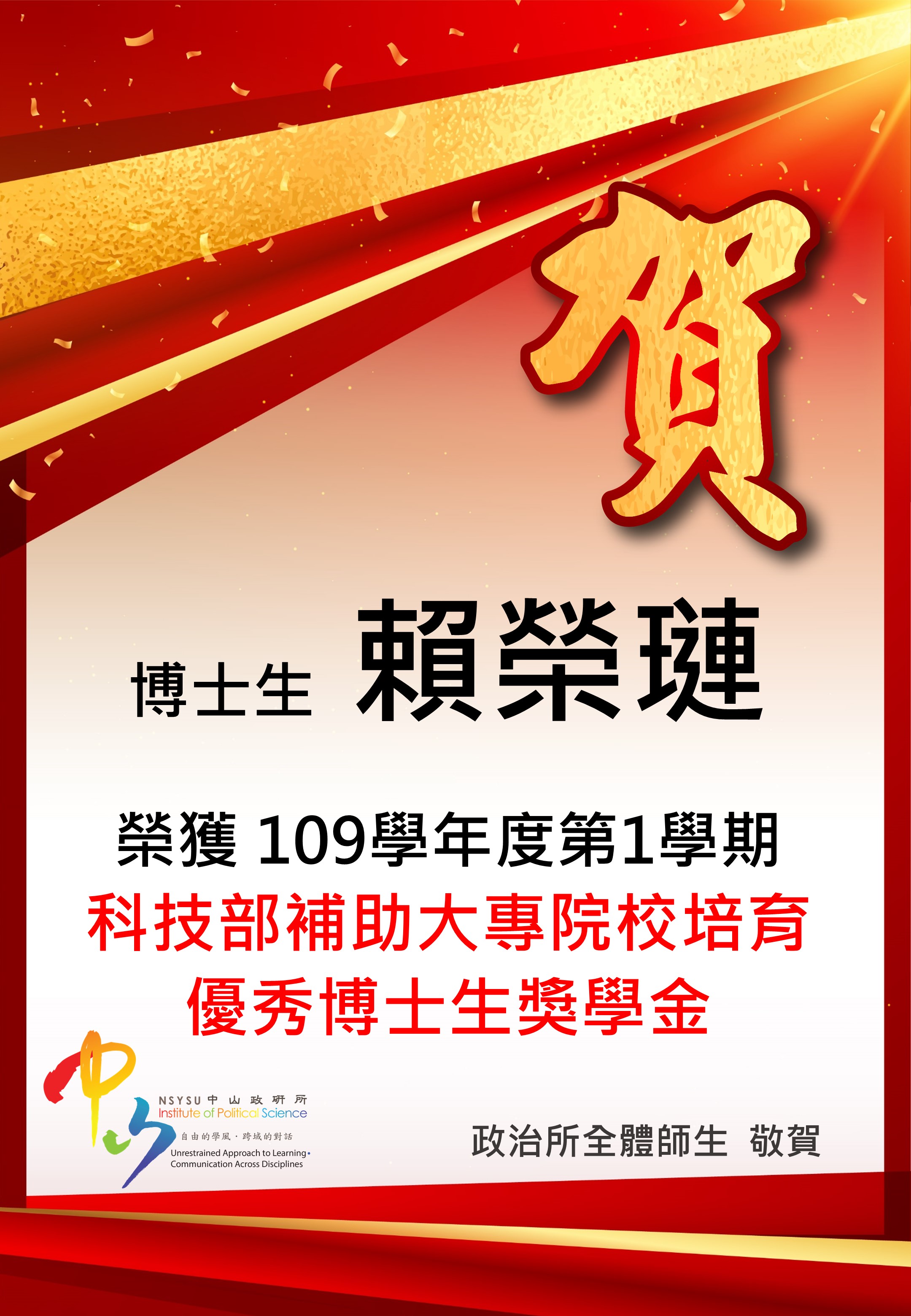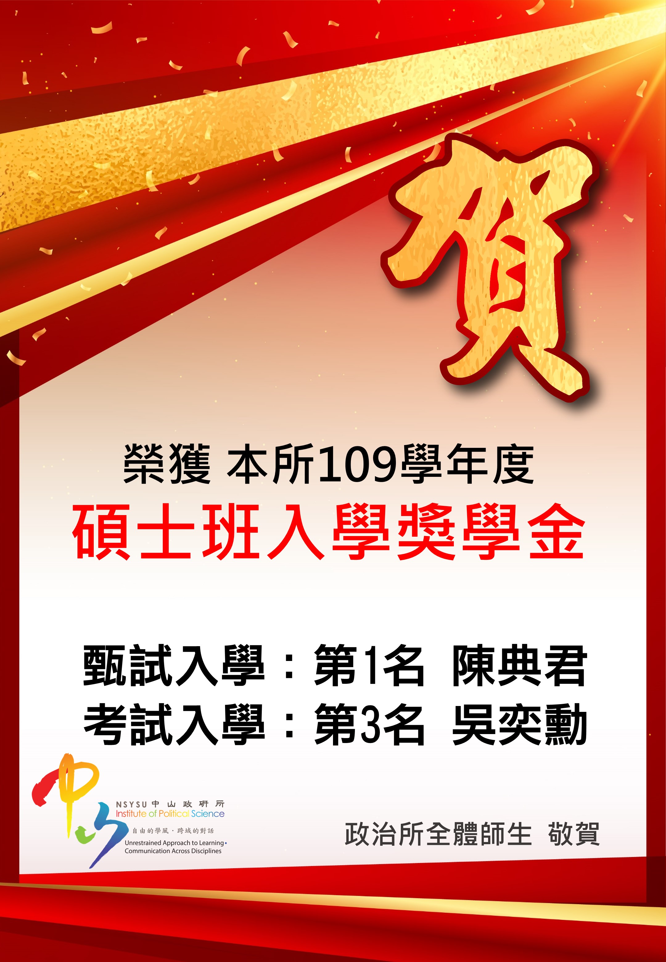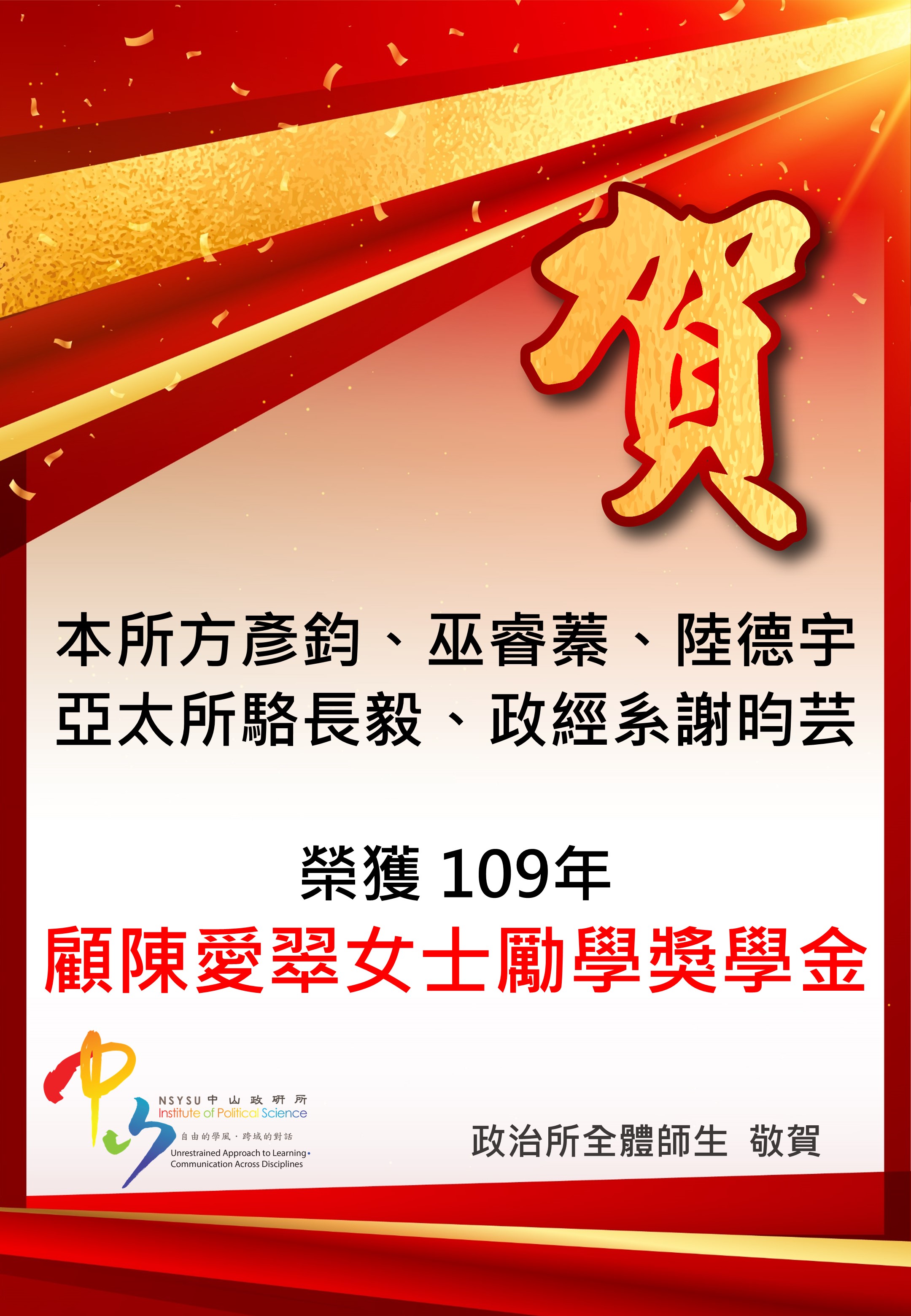 109學年政治所「顧陳愛翠女士勵學獎學金」(依姓氏筆畫排序)