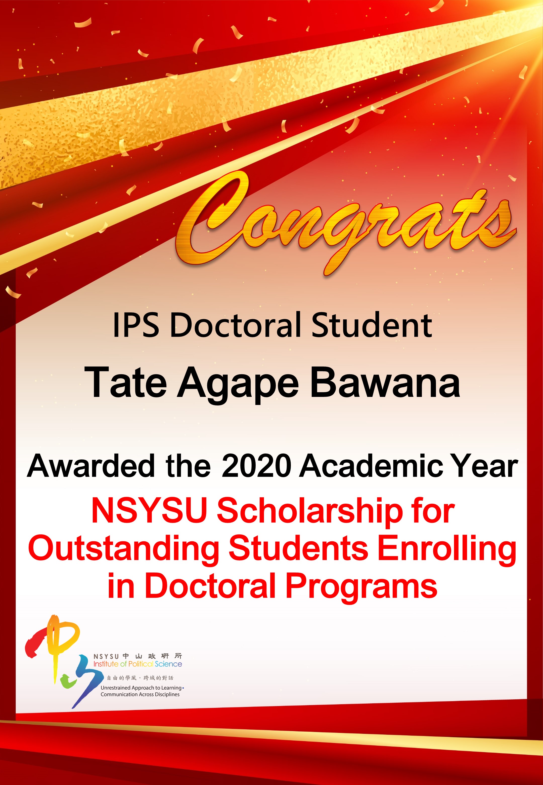 109學年度「獎勵外國優秀學生就讀本校博士獎助學金」