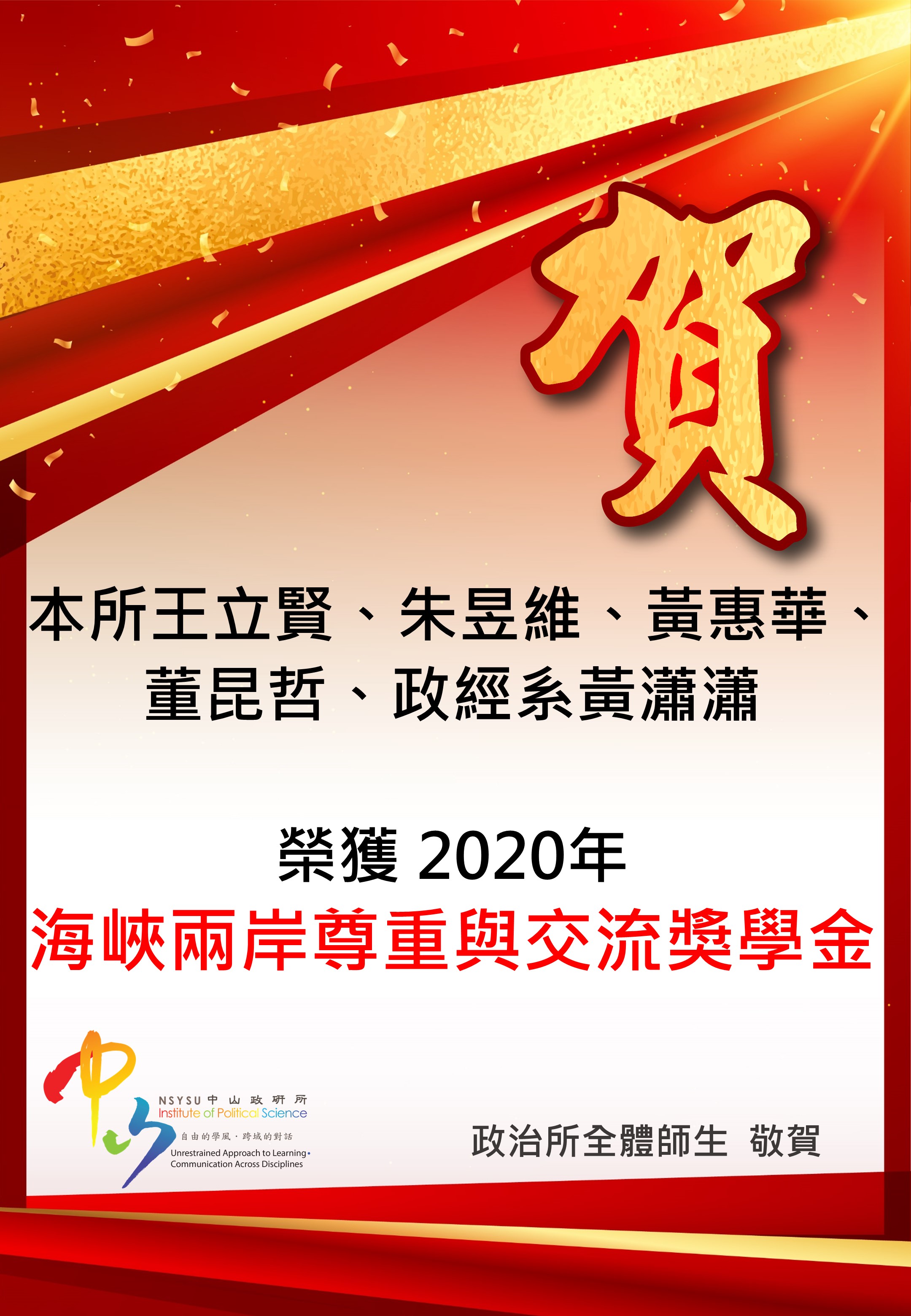2020年政治所「海峽兩岸尊重與交流獎學金」(依姓氏筆畫排序)