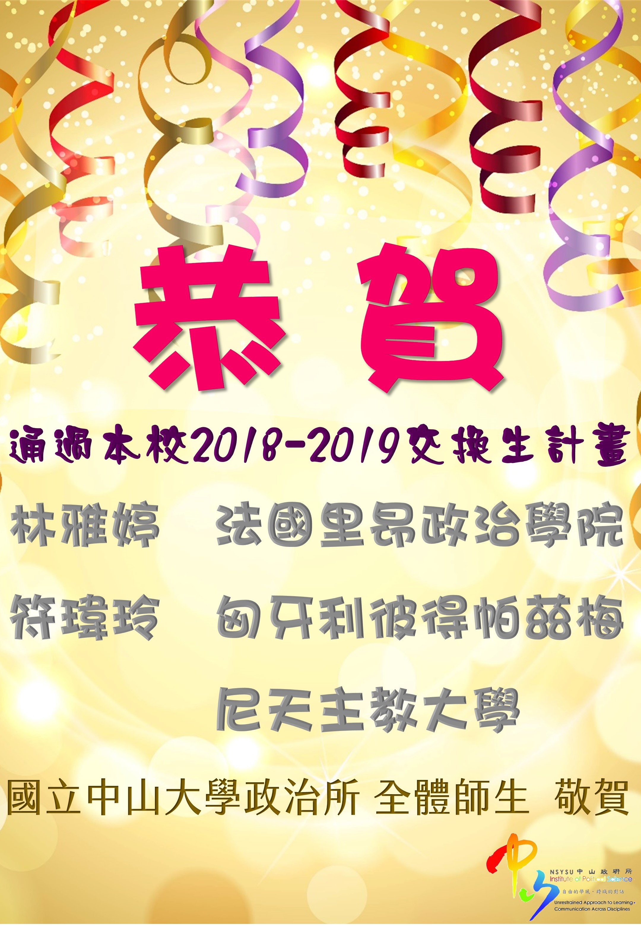 恭賀本所碩士生林雅婷、符瑋玲通過本校2018-2019交換生計畫