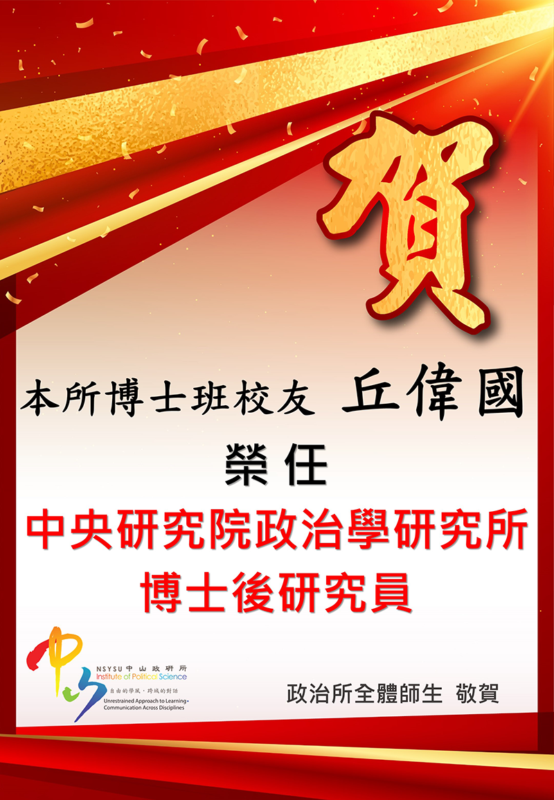 恭賀博士班所友丘偉國榮任中央研究院政治學研究所博士後研究員!