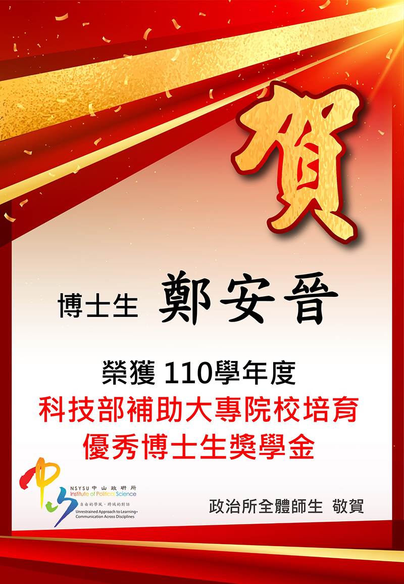 恭賀本所博士生鄭安晉獲科技部優秀博士生獎學金
