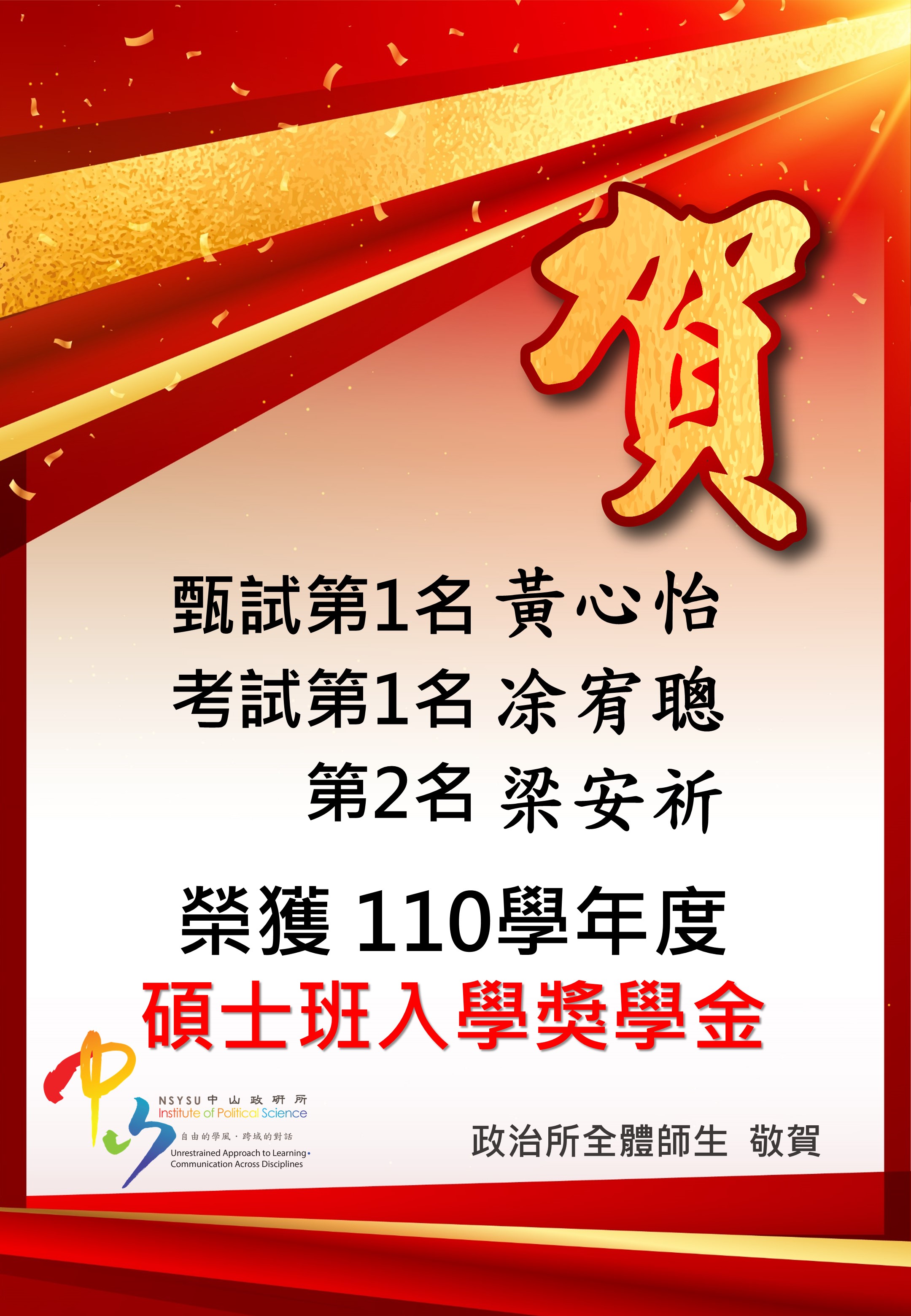 恭賀110級碩士生榮獲110學年度入學獎學金