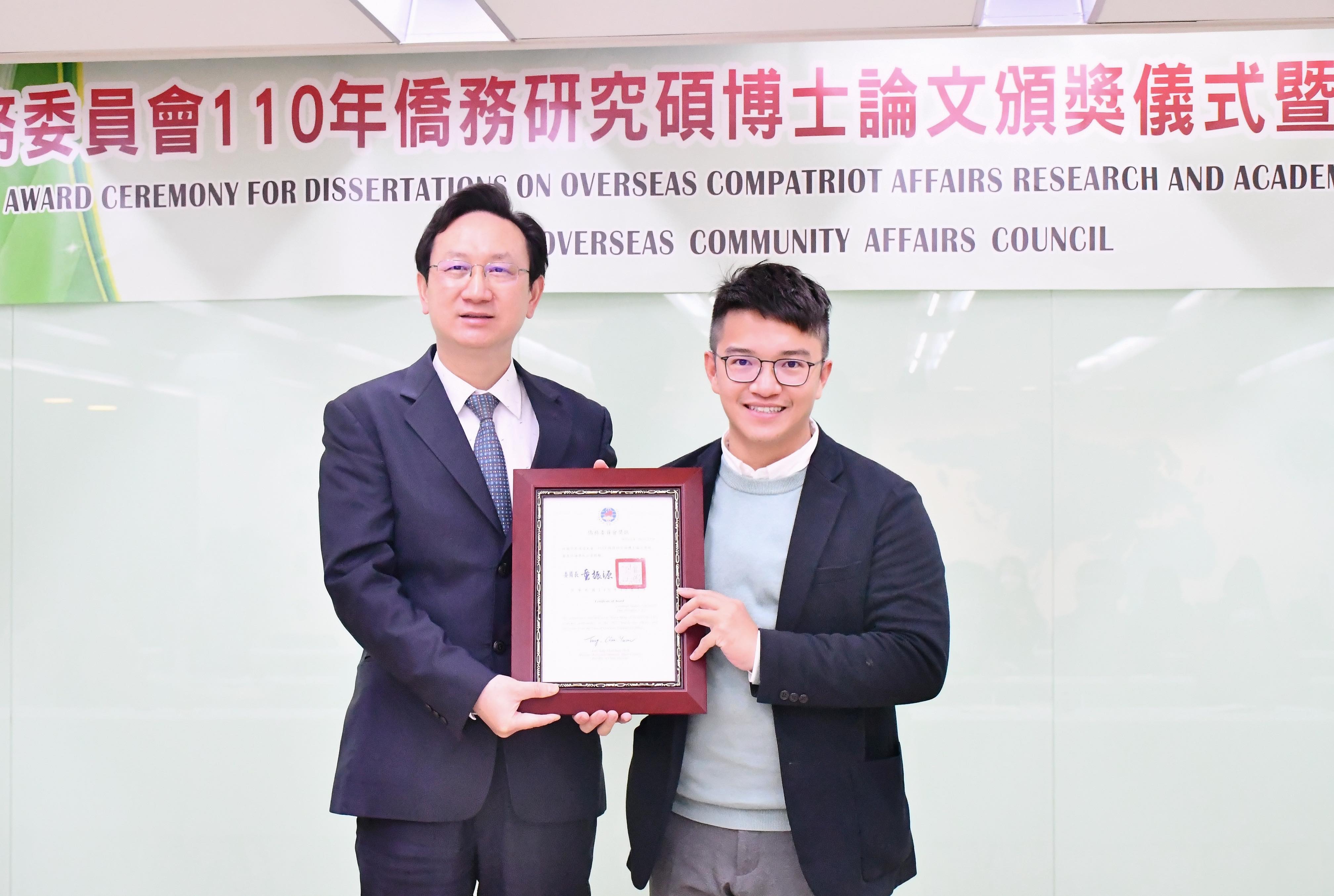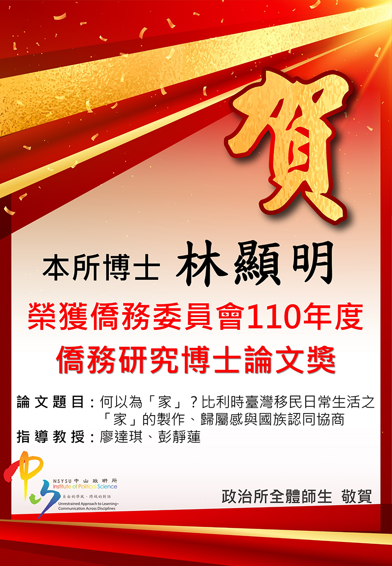 賀本所博士生林顯明榮獲110年僑務研究碩博士論文獎