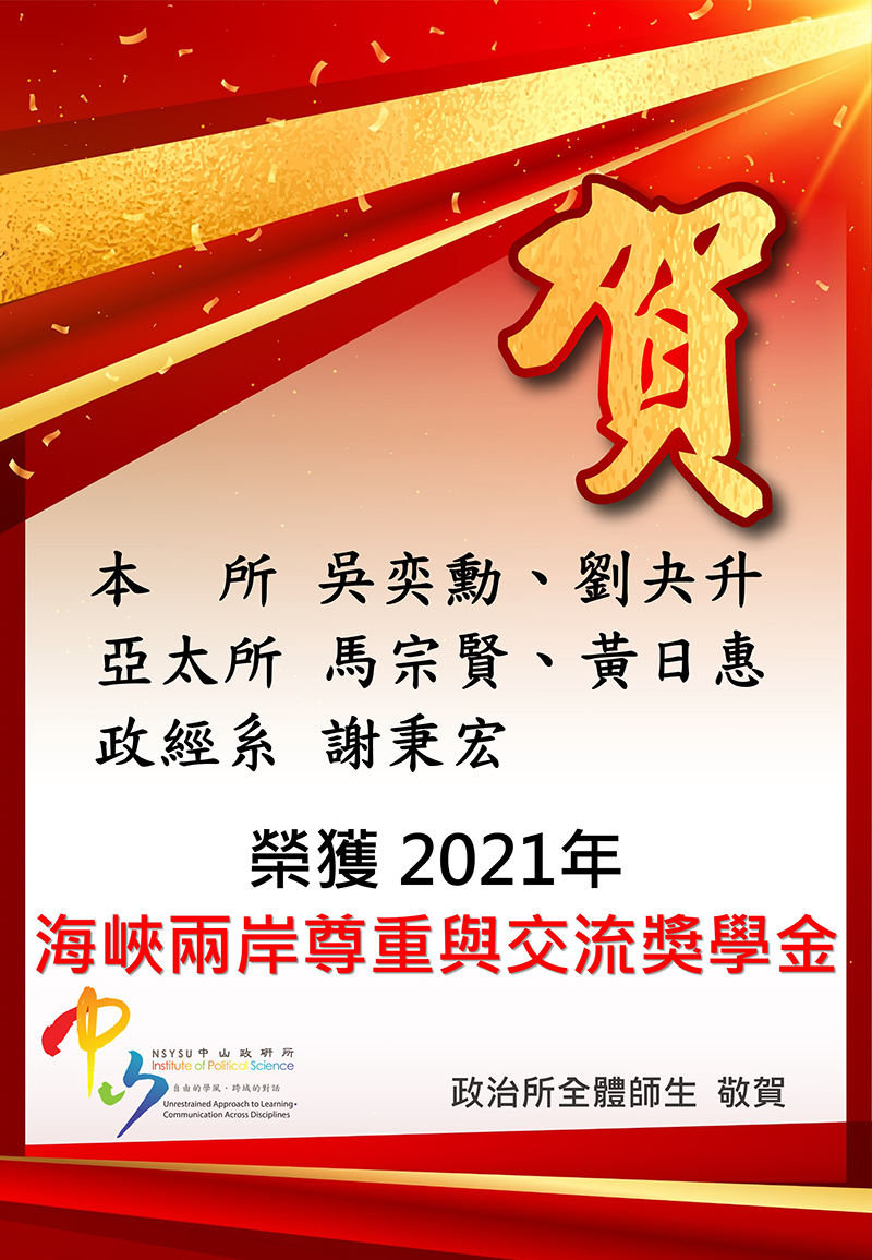 以上同學榮獲2021年海峽兩岸尊重與交流獎學金