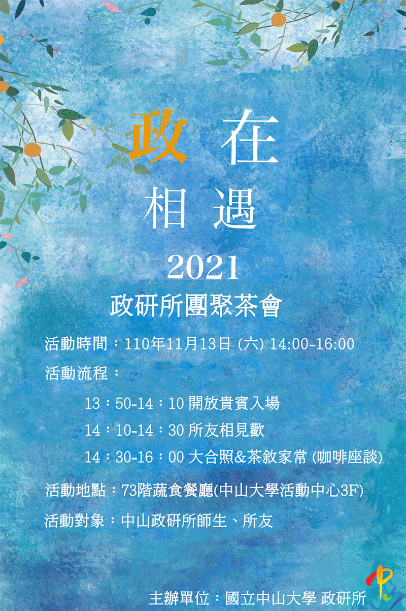 - 本活動已結束,點我看2021中山政研師生所友團聚茶會紀實。