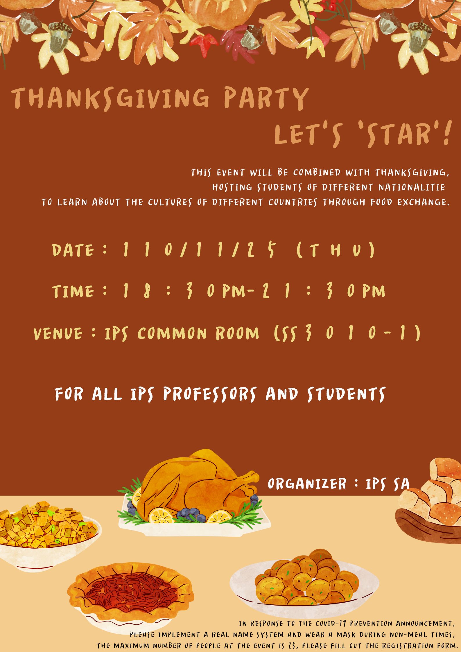 - 活動目的:促進本地生與外國生交流,並一同歡度感恩節!