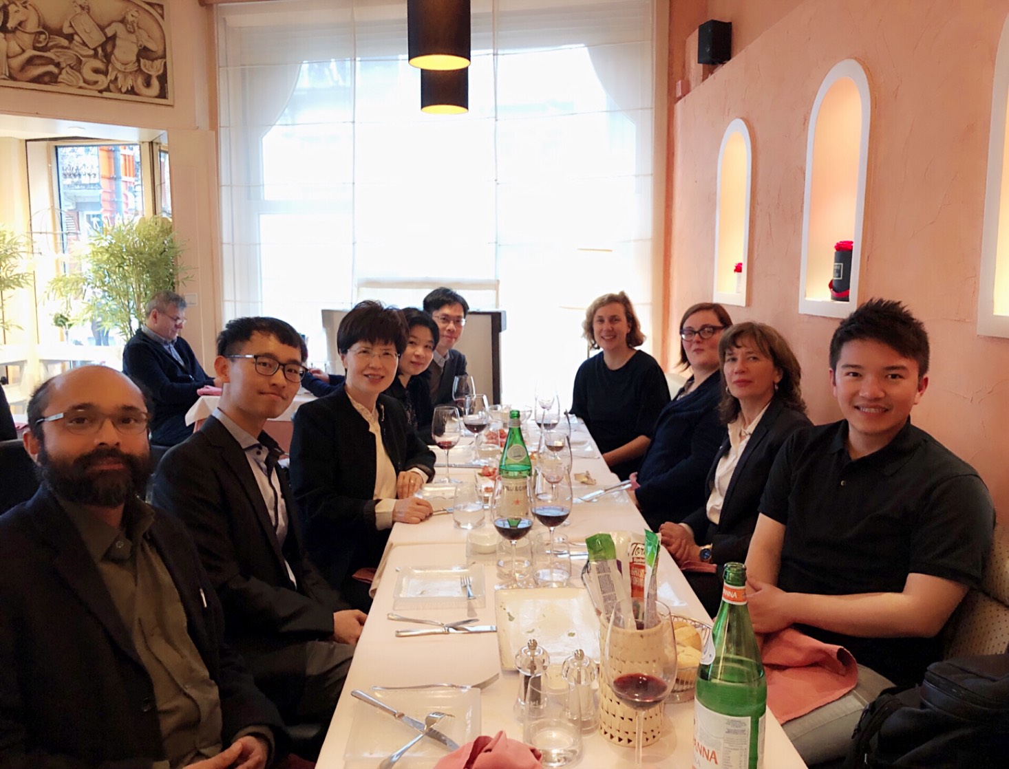 本所劉正山所長與廖達琪教授赴魯汶與雙聯學位計畫之博士生林顯明與林駿棋及魯汶大學教授與會合照