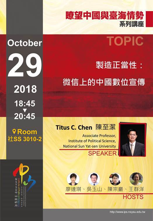 主講人: 陳至潔教授 (國立中山大學政治學研究所副教授)