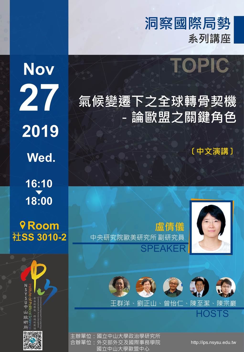 講題:氣候變遷下之全球轉骨契機-論歐盟之關鍵角色