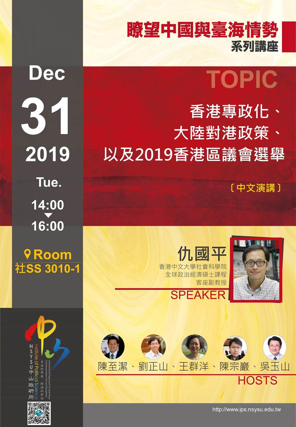 講題:香港專政化、大陸對港政策、以及2019香港區議會選舉