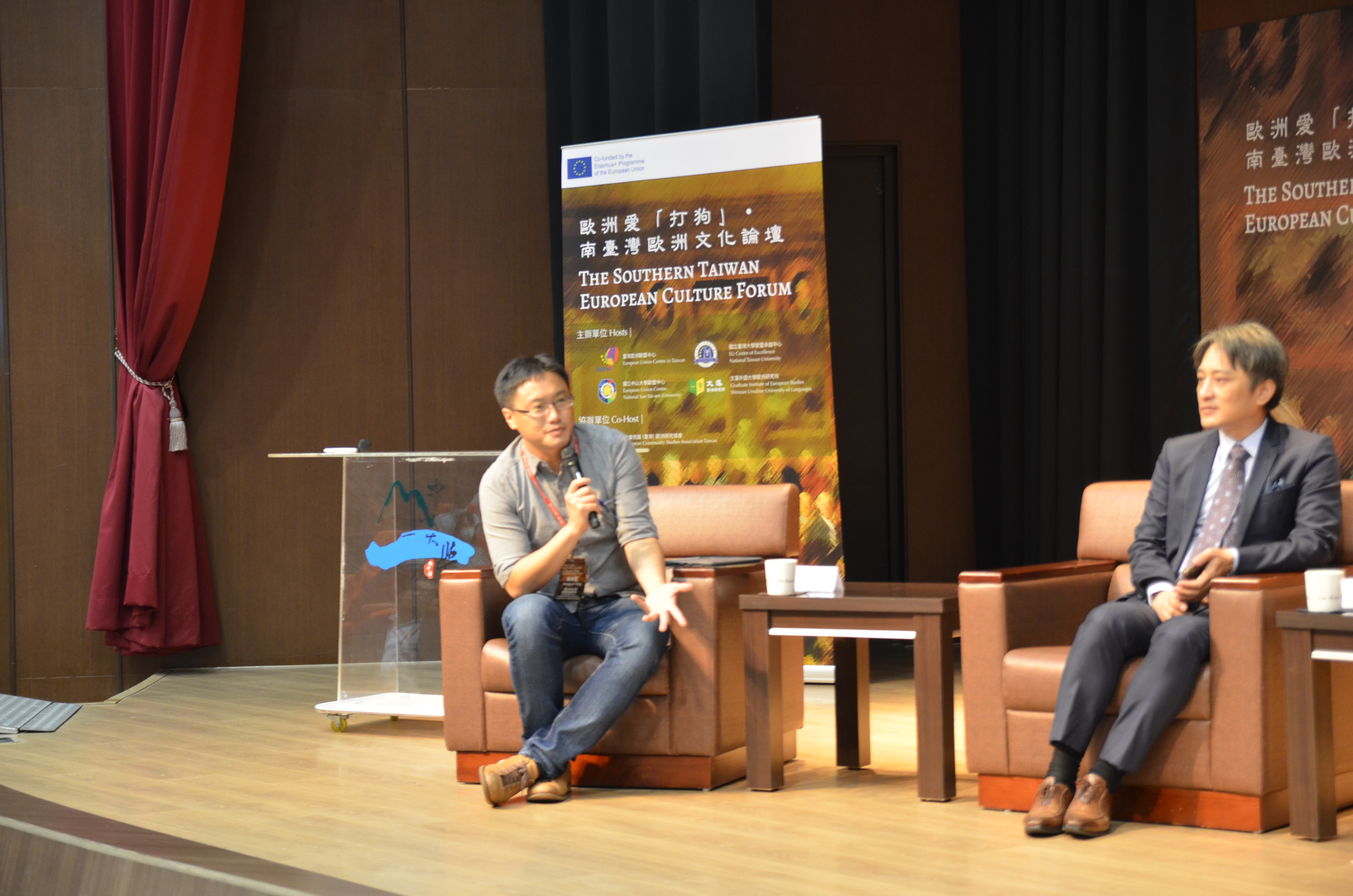 由本所老師協助規畫的「歐洲愛打狗」南台灣歐洲文化論壇,於9/19日於本校國研大樓舉行,此活動由台大歐盟中心、中山歐盟中心及文藻大學歐洲研究所共同舉辦,中華民國(臺灣)歐洲研究協會協辦。本所廖達琪教授及楊尚儒老師代表本校歐盟中心協助活動策畫。楊老師以其留學德國的深刻經驗,主持「歐洲生活美學與藝術裝飾」、「「打狗」沙龍 Kaohsiung Salon」等場次,與文化界、時尚界及觀光界展開對話,帶領與會者看見跨域對話及高雄這座城市的文化底蘊。
