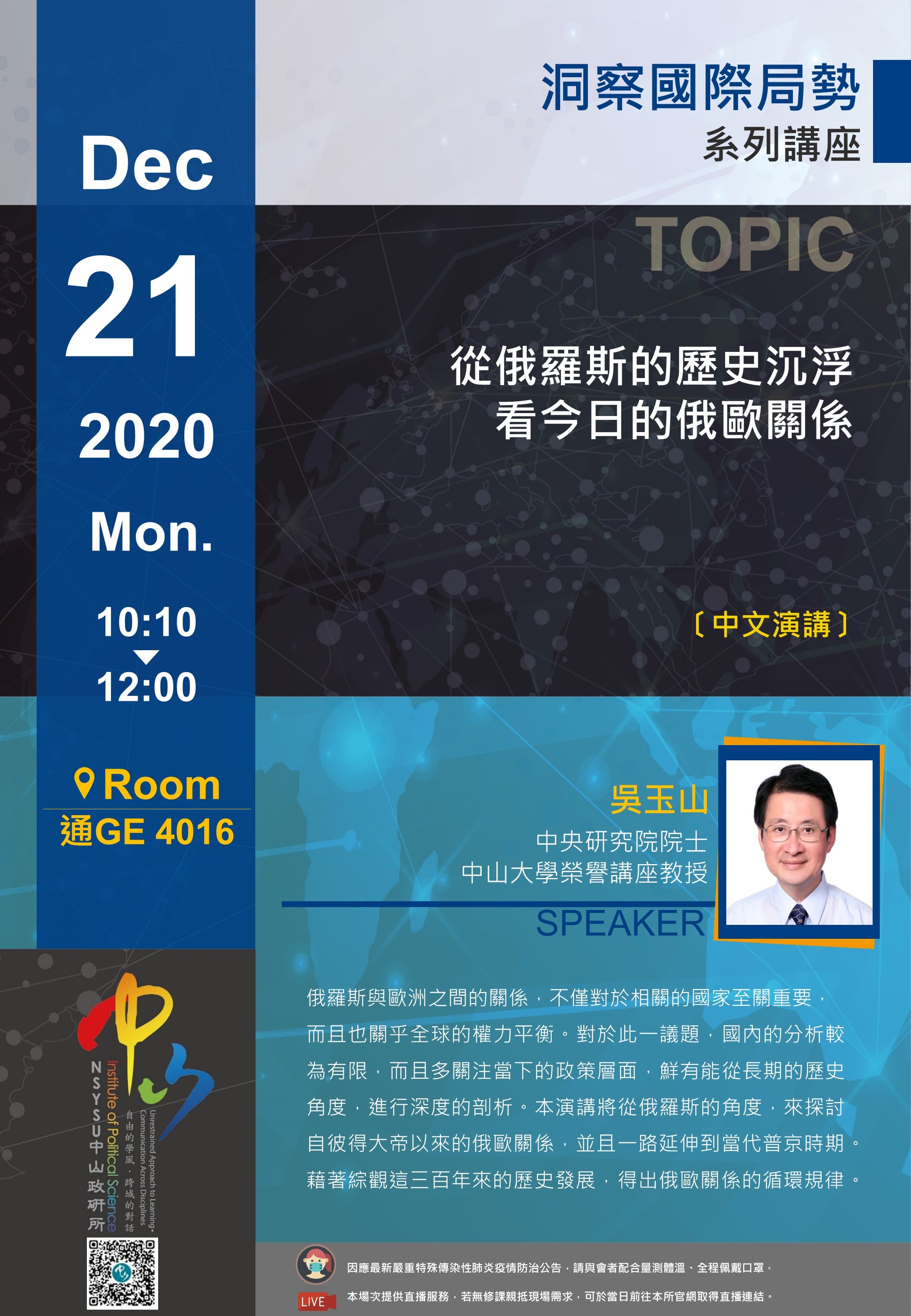 主講人:吳玉山 (中央研究院院士、中山大學榮譽講座教授)