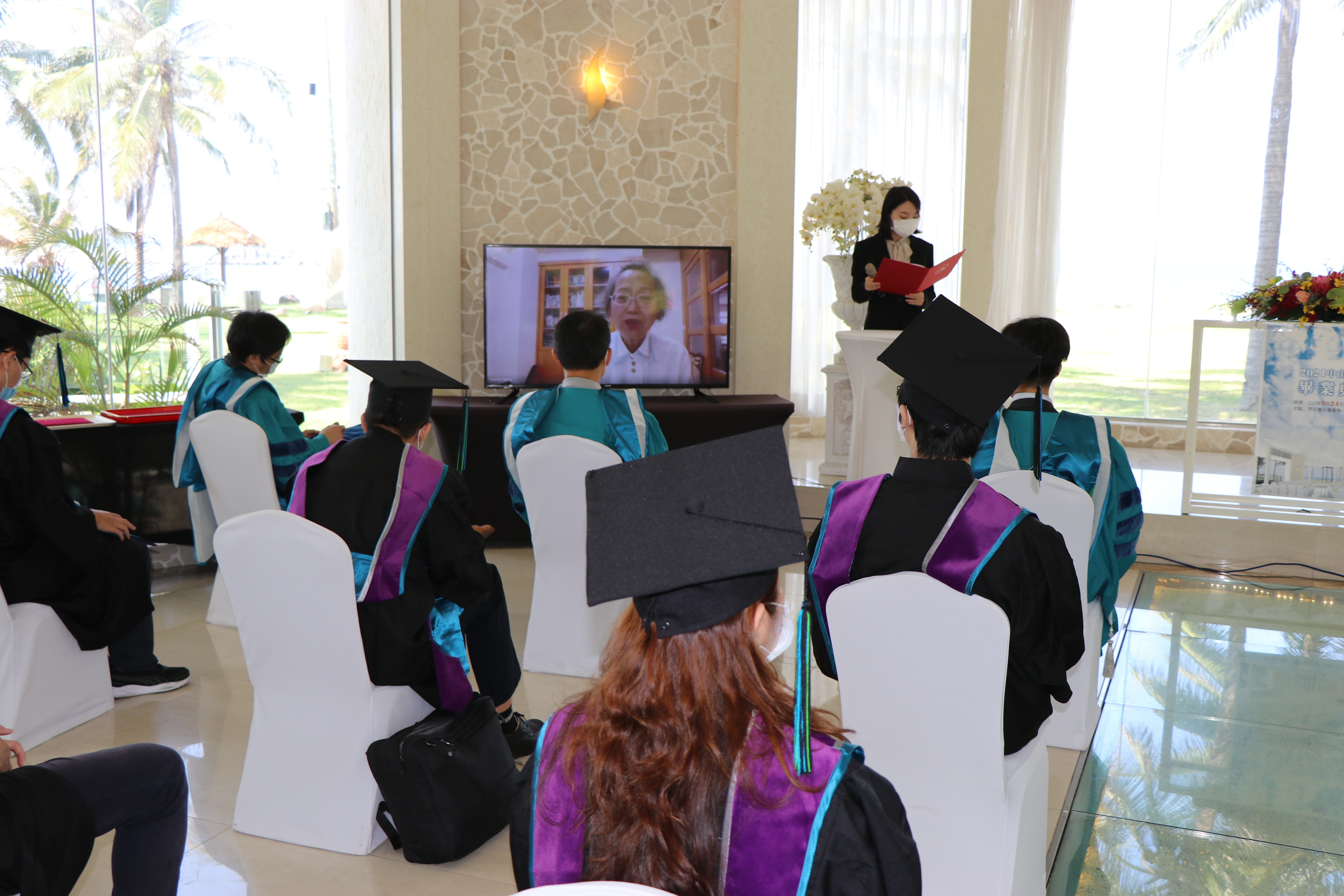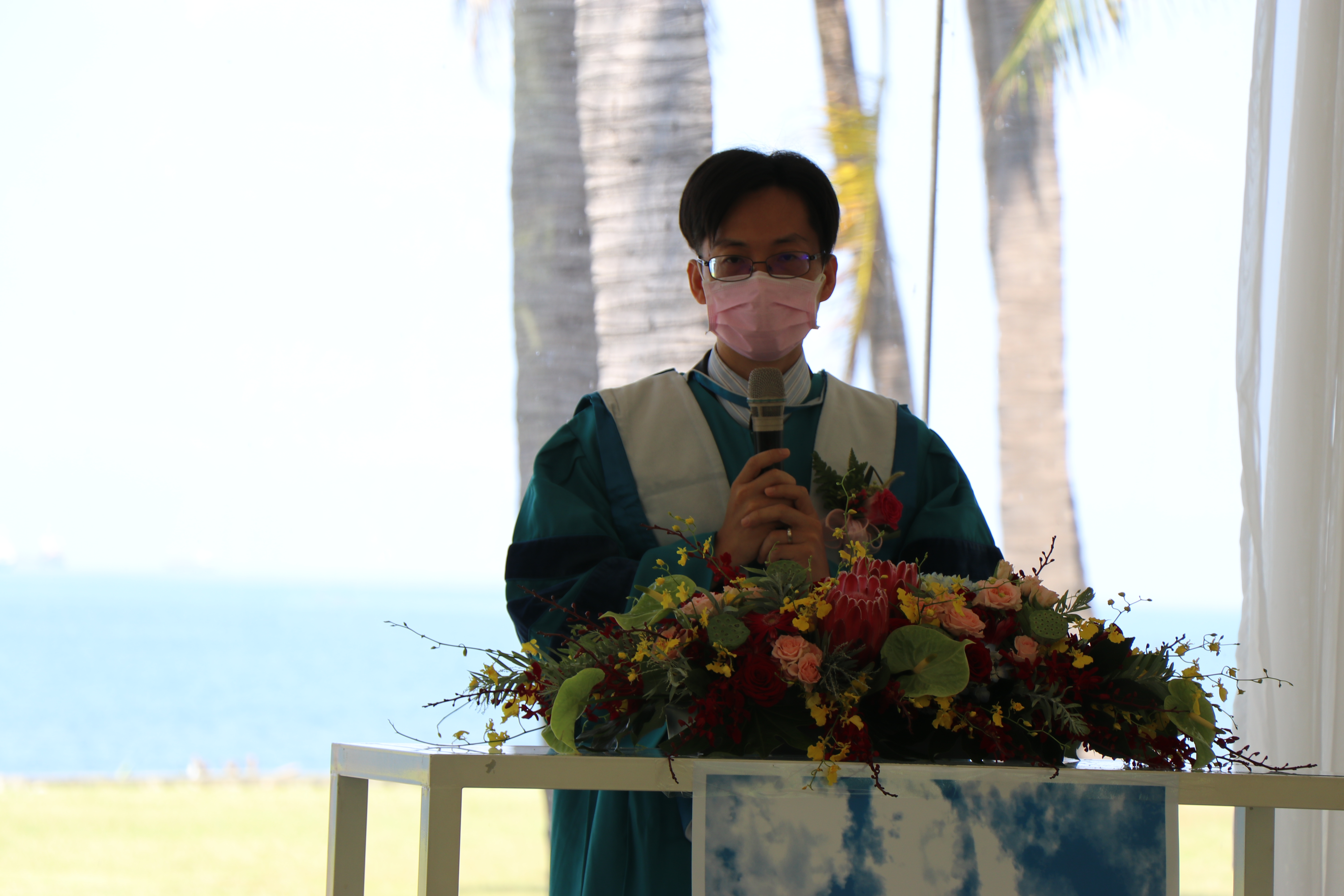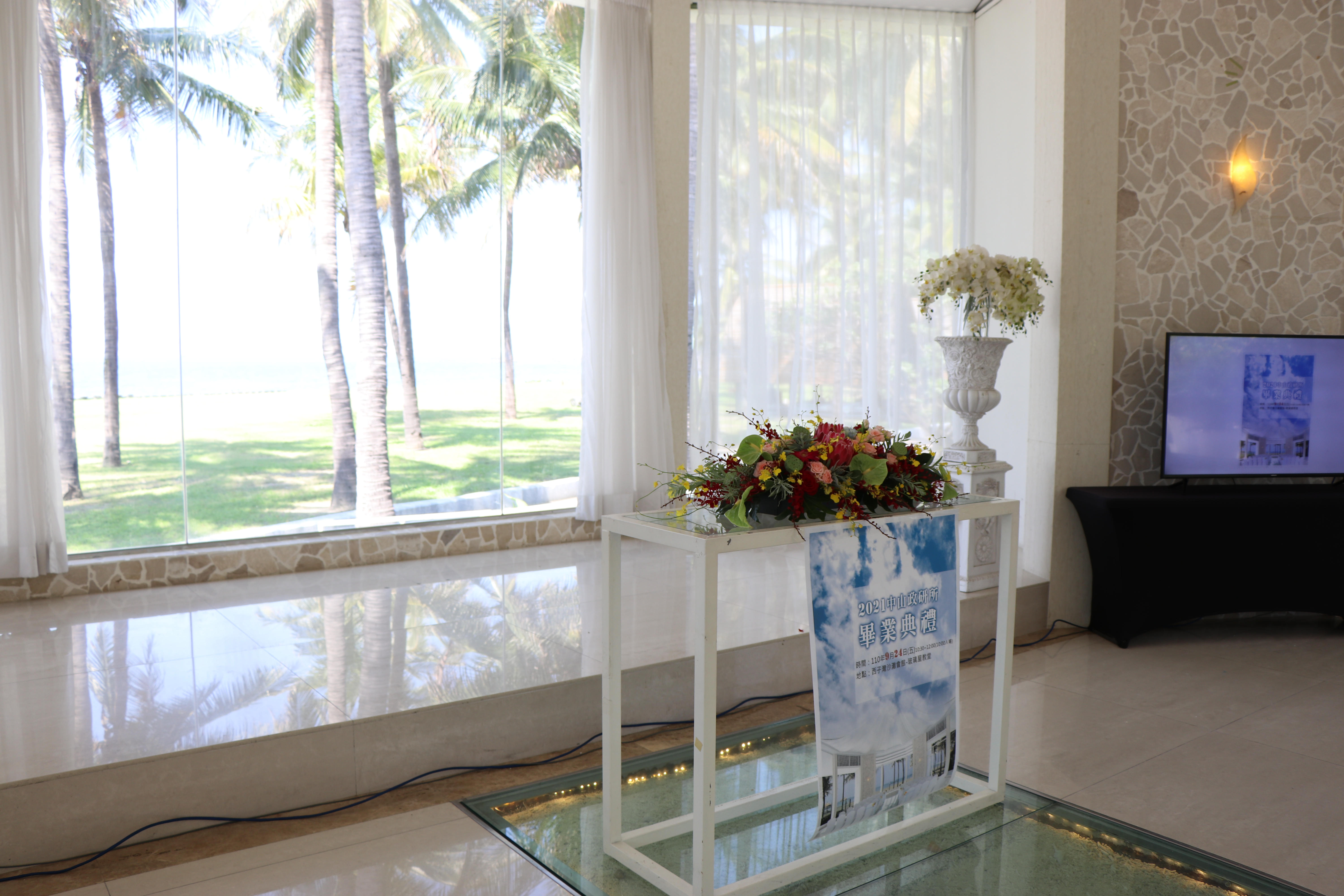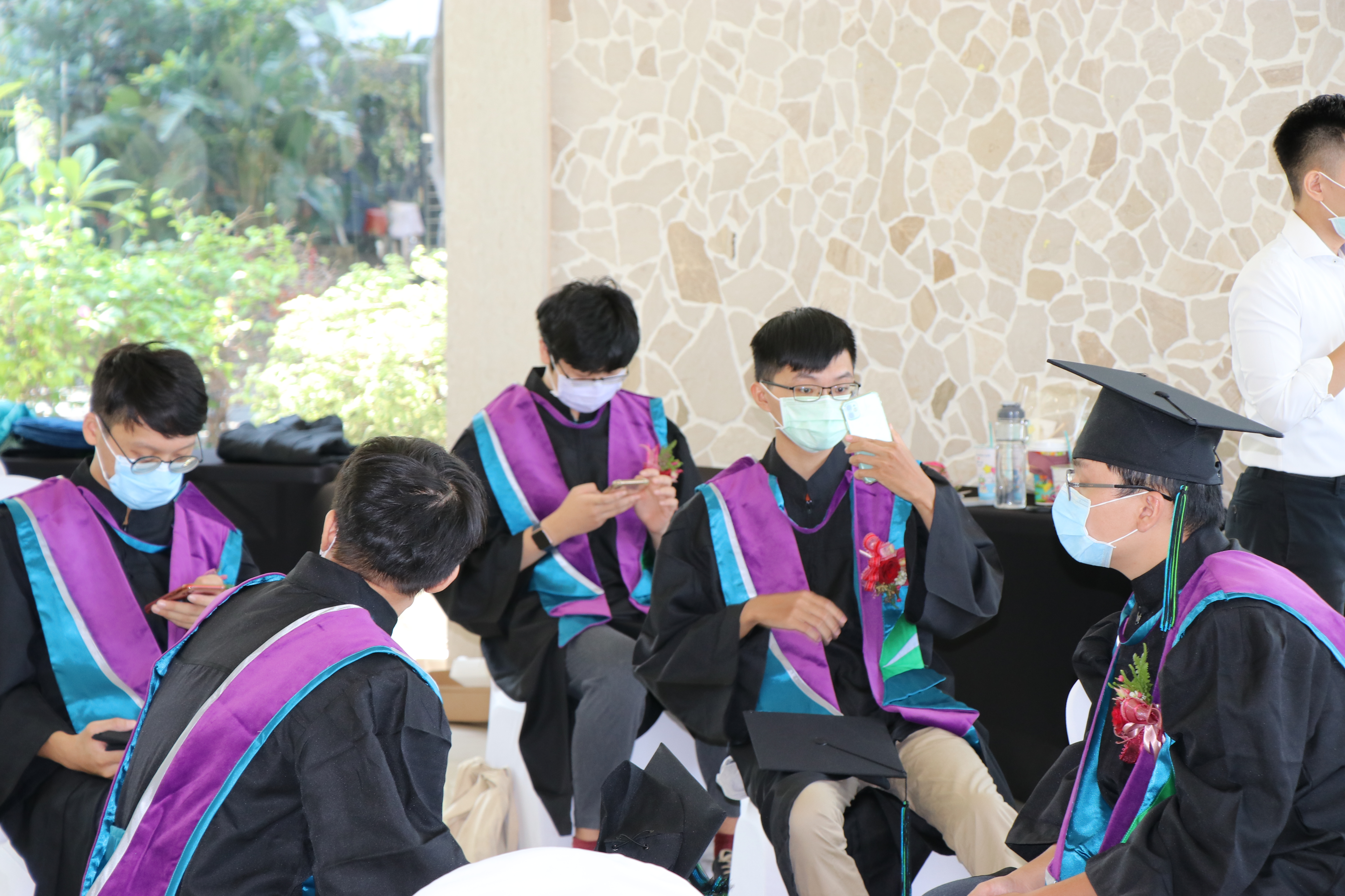 活動全程進行線上直播,本所在學同學,以及畢業生親友線上觀禮,給予畢業學長姊滿心的祝福,並一窺西子灣海天一線的最美禮堂。