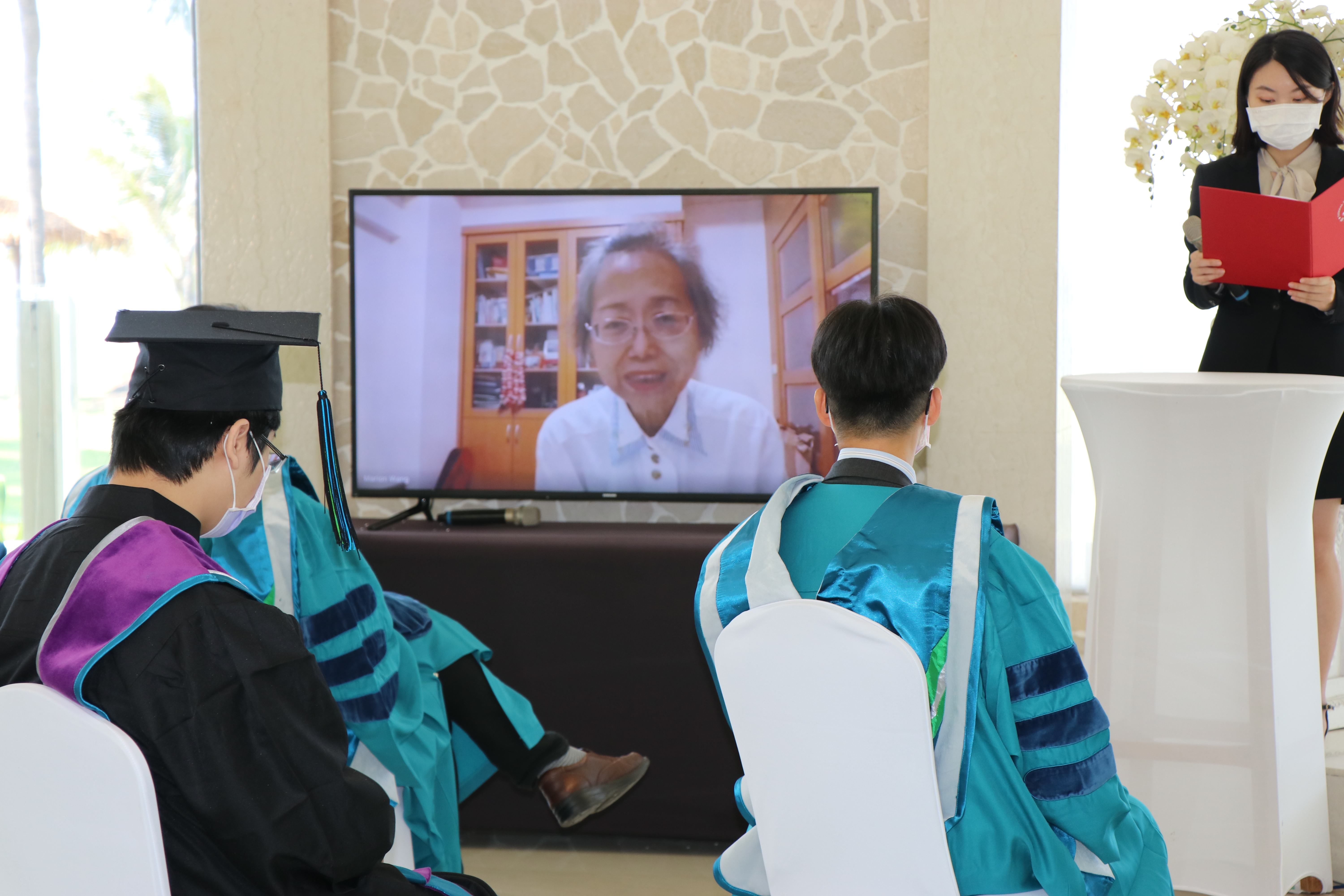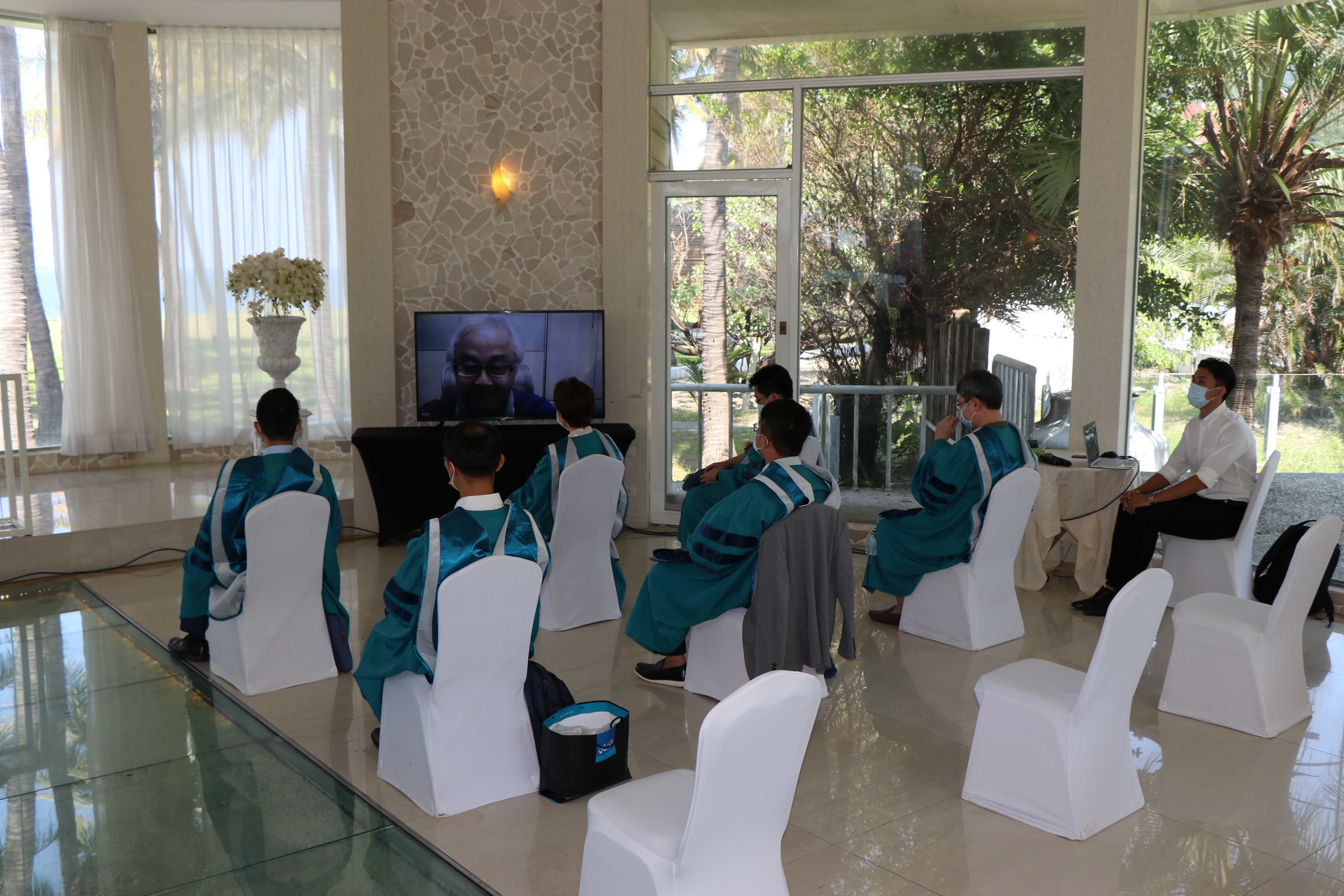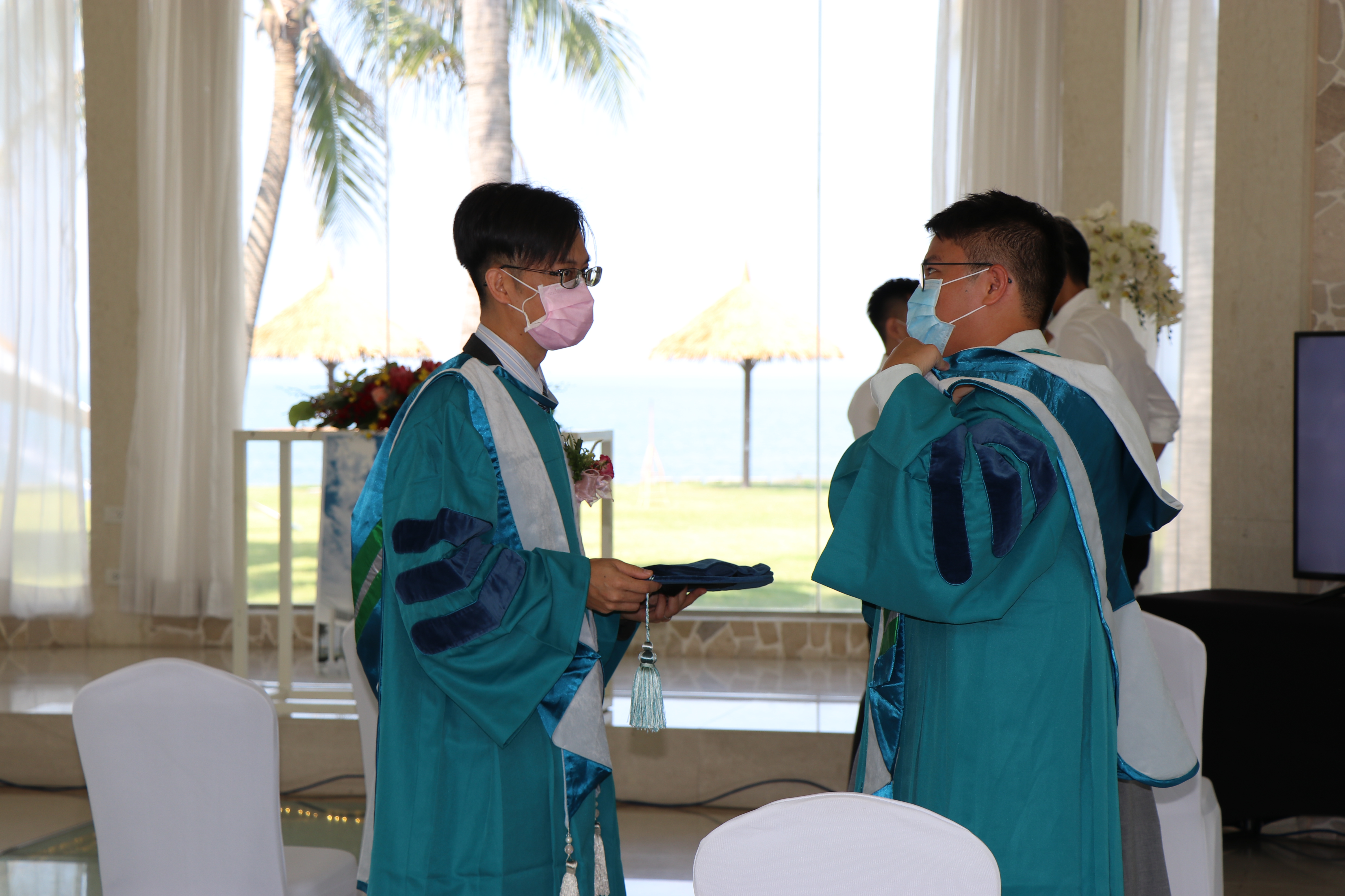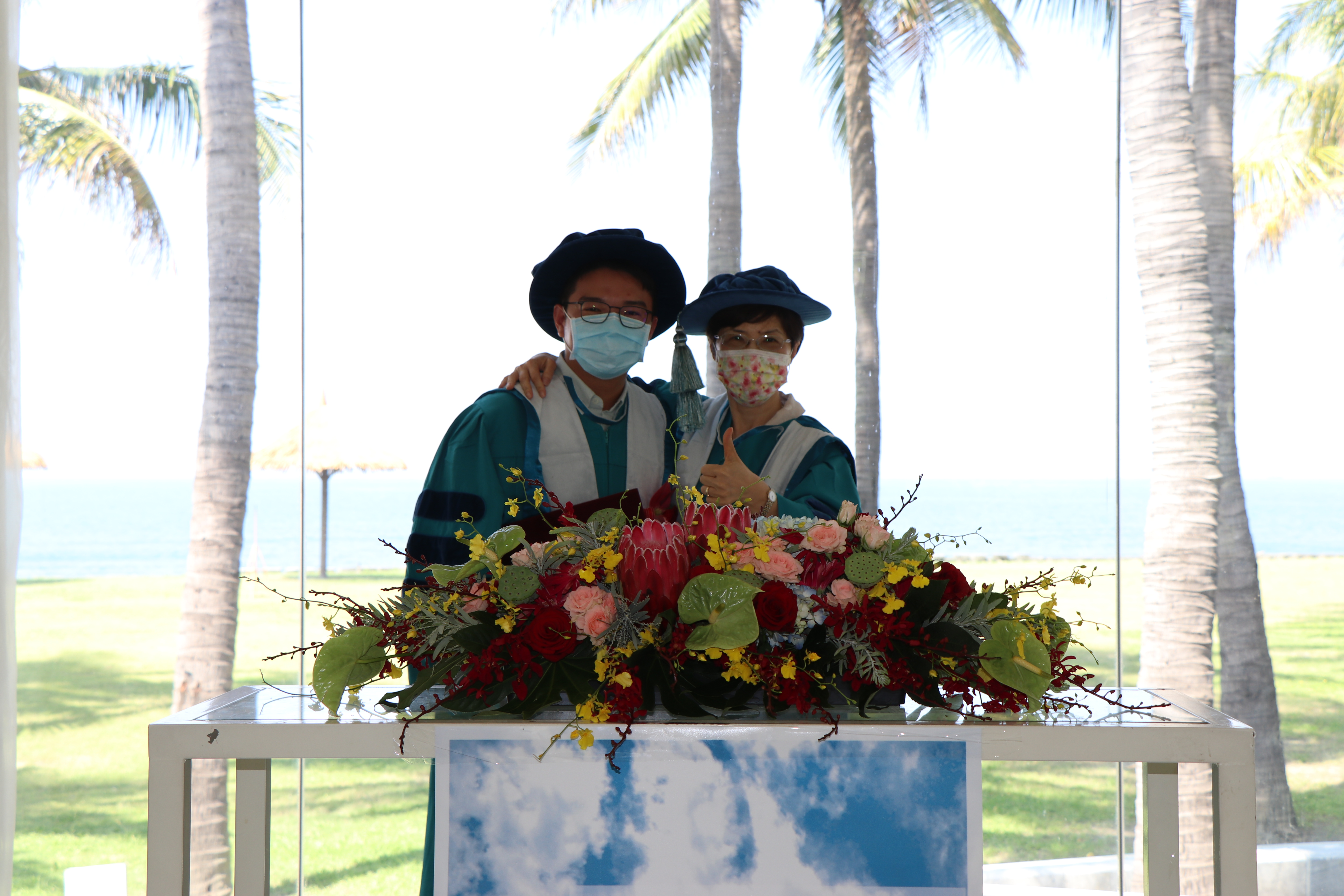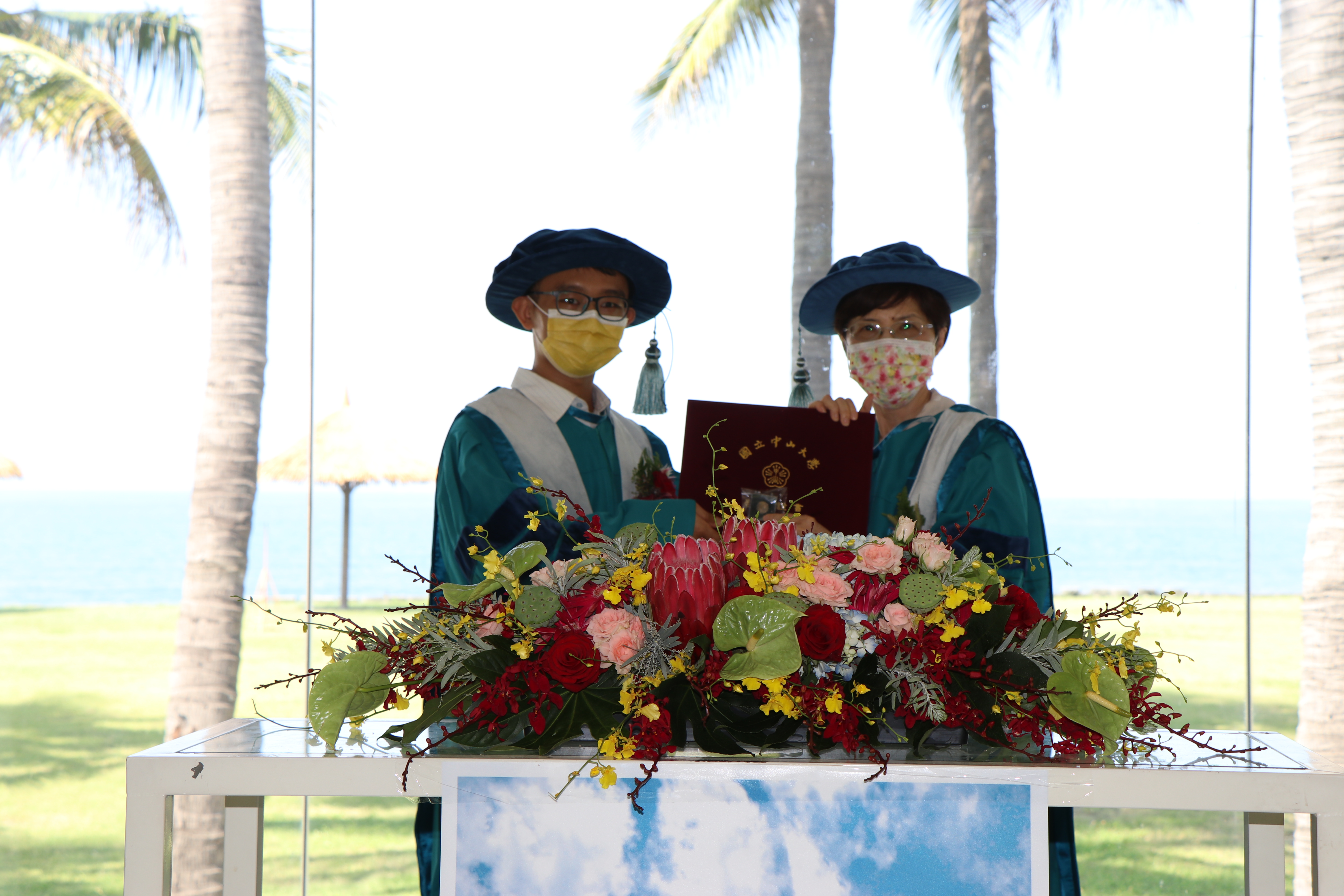 活動全程進行線上直播,本所在學同學,以及畢業生親友線上觀禮,給予畢業學長姊滿心的祝福,並一窺西子灣海天一線的最美禮堂。