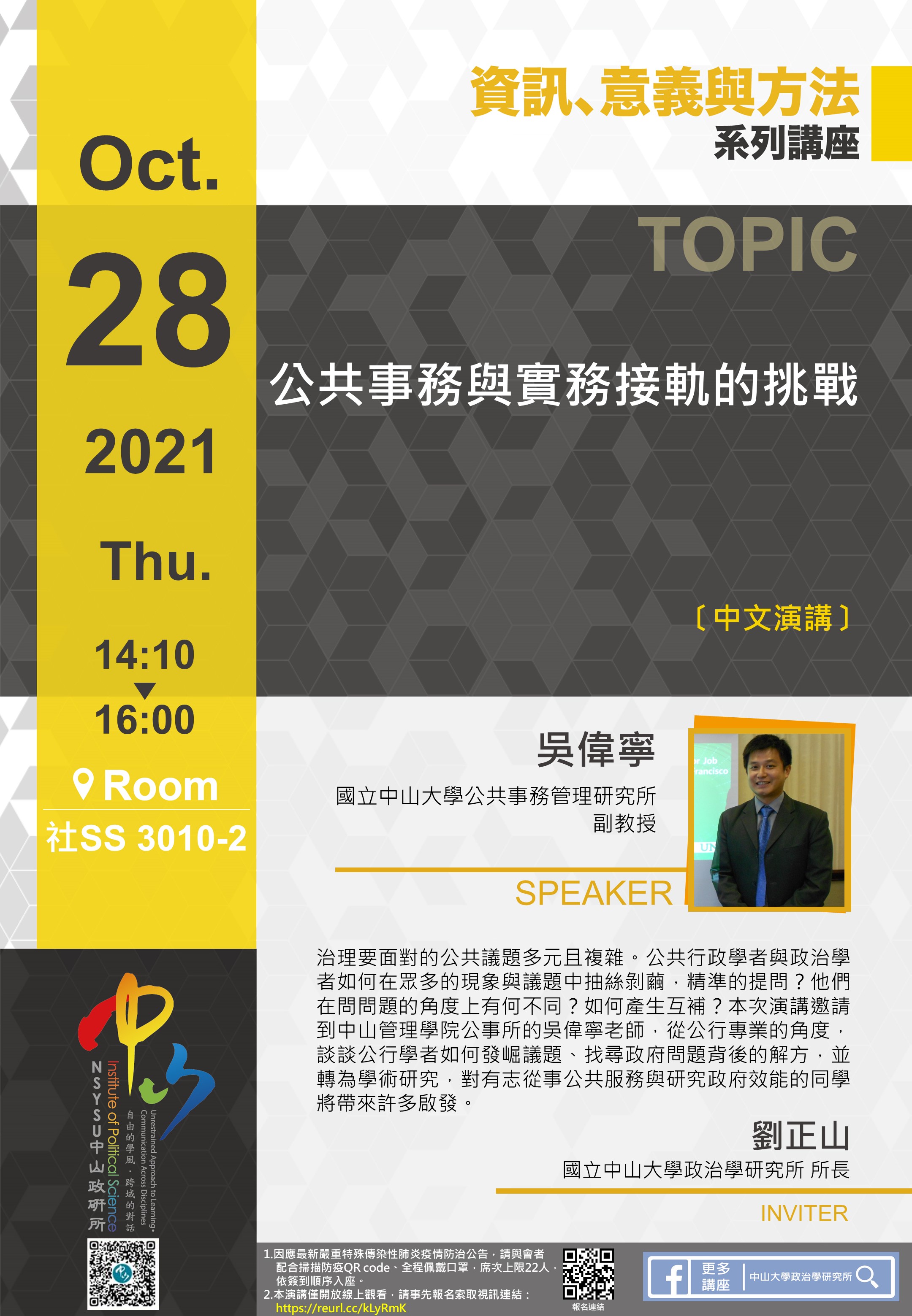主講人:吳偉寧(國立中山大學公共事務管理研究所 副教授)