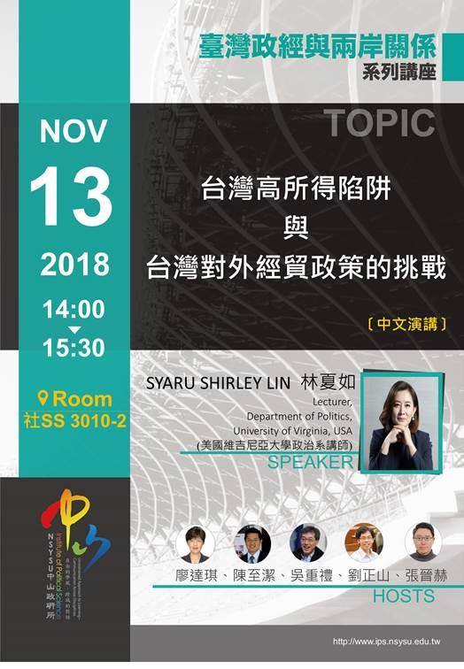 講者: SYARU SHIRLEY LIN 林夏如(Lecture, Department of Politics,University of Virginia,USA)