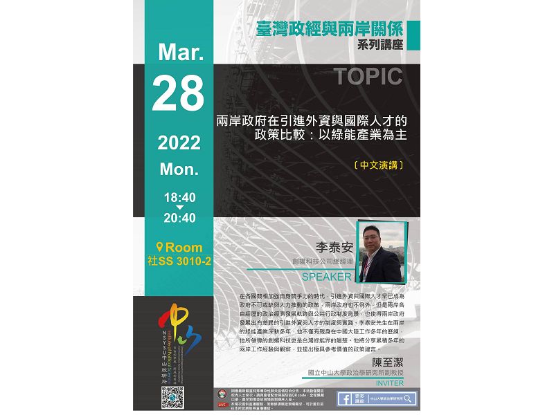講題:兩岸政府在引進外資與國際人才的政策比較:以綠能產業為主