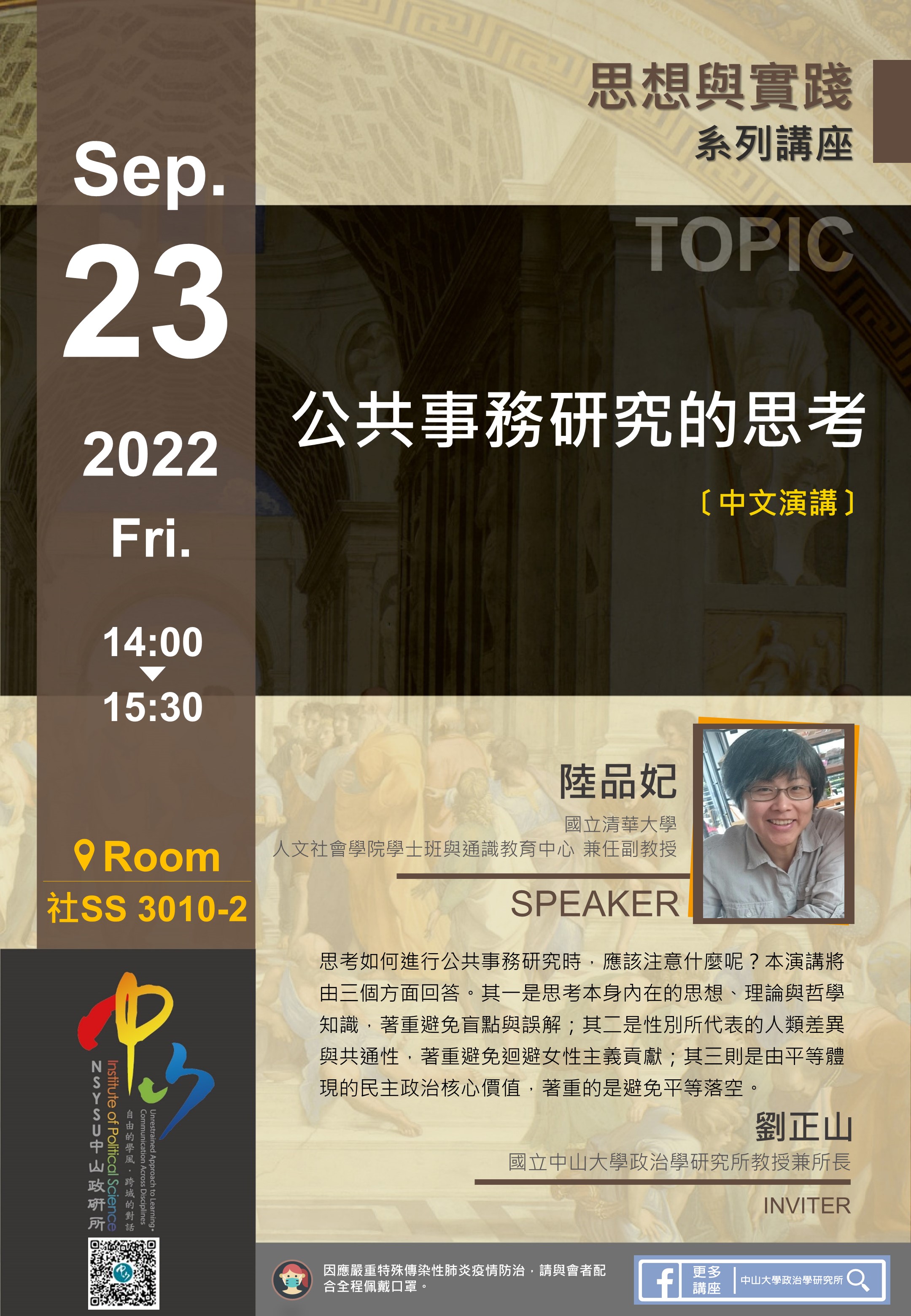 本所舉辦「思想與實踐」系列講座,資訊如下: