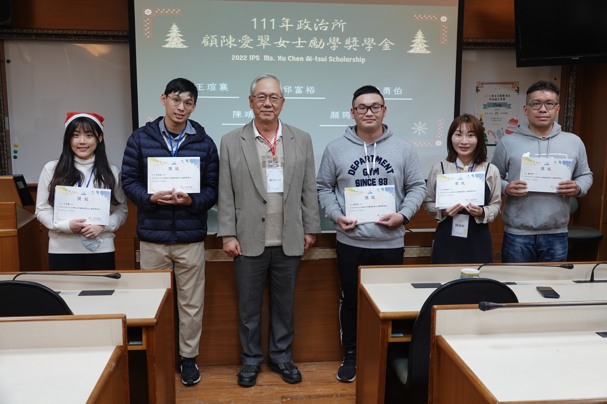 在本次活動中,頒贈獎勵本國優秀學生就讀本校博、碩士獎助學金、3A標竿碩士班獎學金、碩士班甄試、考試入學獎學金、海峽兩岸尊重與交流獎學金、顧陳愛翠女士勵學獎學金,以給予所上優秀同學們學術以及學業上的努力鼓勵與肯定。此外,除了本所劉正山所長、廖達琪教授、陳至潔教授、張晉赫教授、楊尚儒教授到場參加外,還邀請特別嘉賓顧陳愛翠女士勵學獎學金捐款人顧長永教授來為這些獲獎同學們頒獎和勉勵,期許所上同學在學術上以及學業表現上,能夠不斷精益求精。