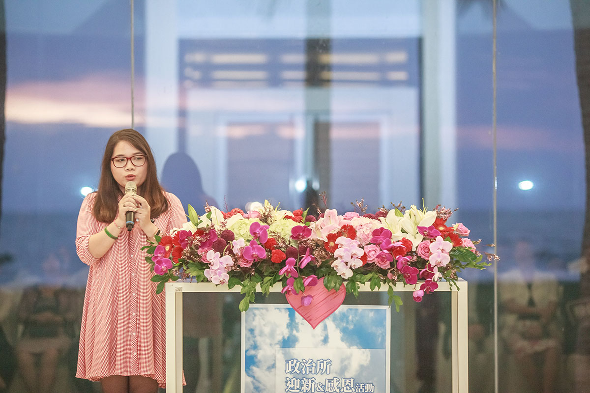 中山政治所假西灣沙灘會館玻璃屋教堂,舉辦107學年度政治所迎新與感恩活動,為正式取得學位且要離校的畢業生和其家長致賀,並向全所同學介紹本所教師與行政團隊。