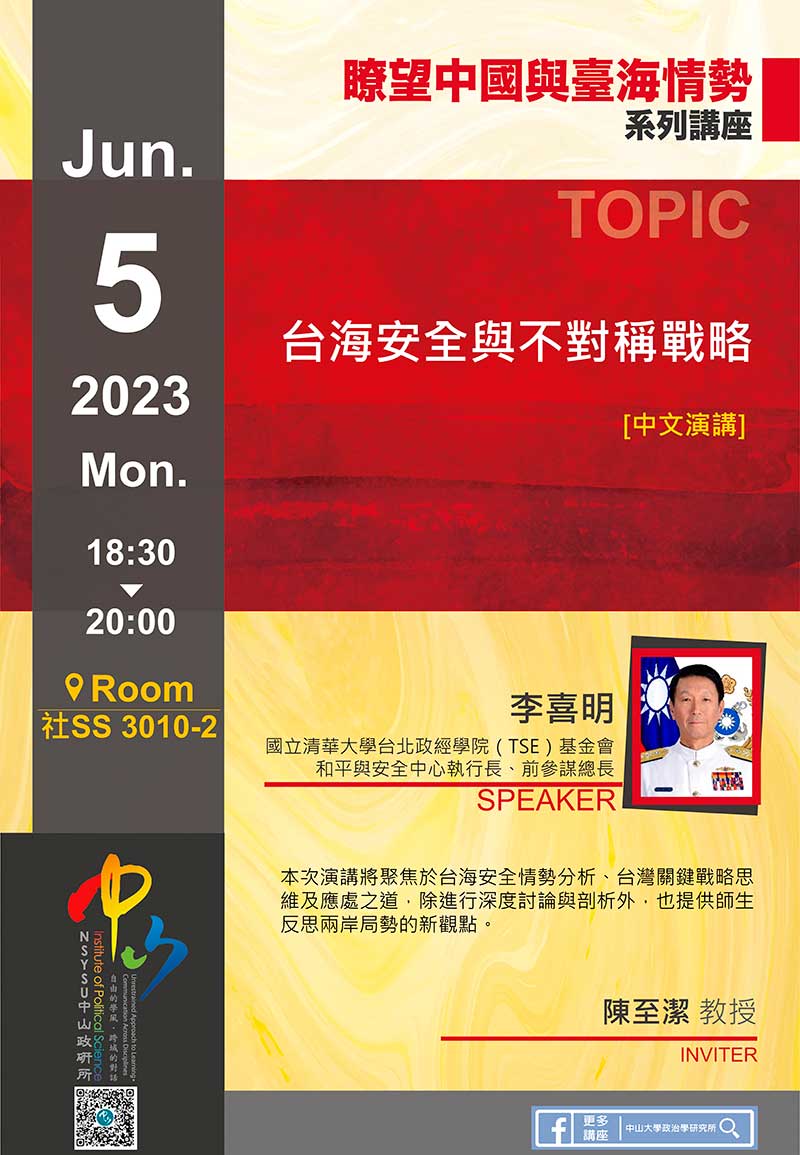 本所舉辦111-2學期「瞭望中國與臺海情勢」系列講座,