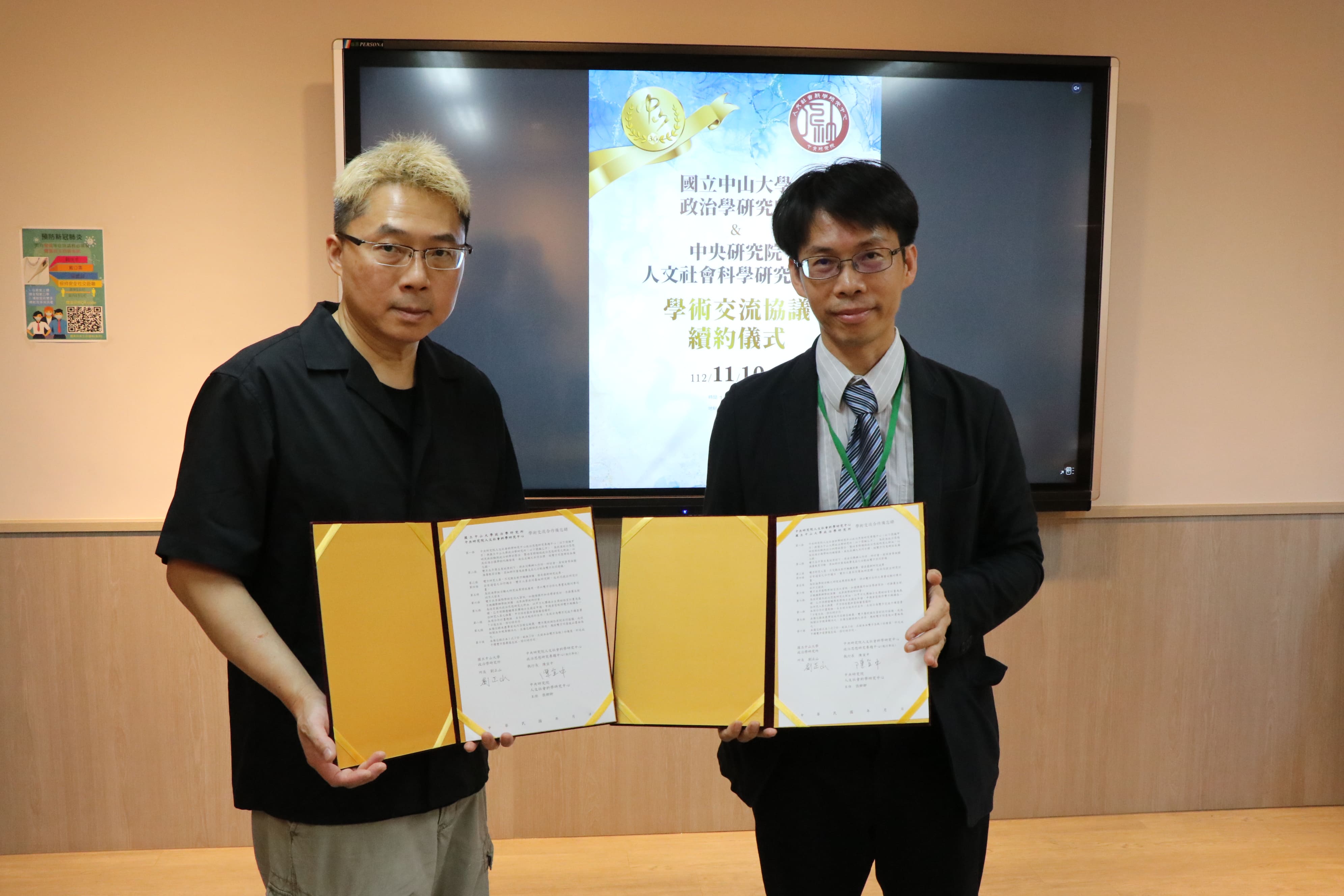 中山政治所和中研院人社中心於民國112年11月10日簽署學術交流。
