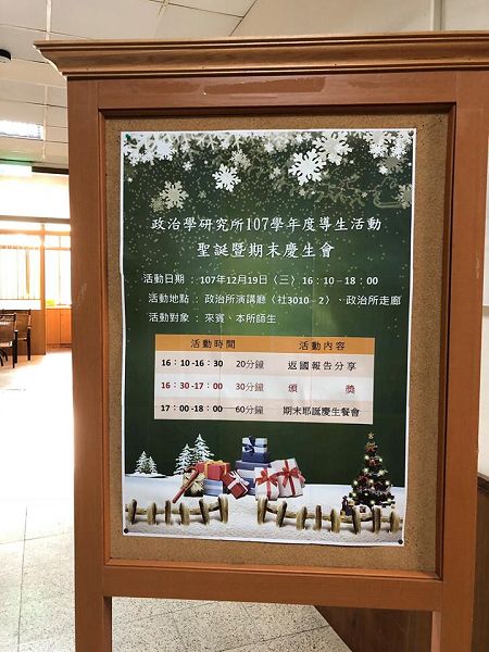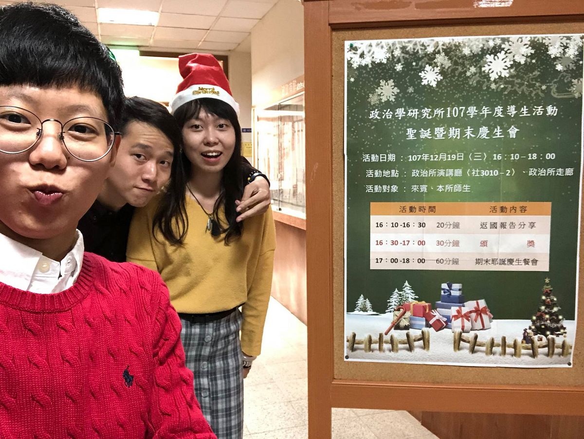 這是我們政治所的日常小確幸,大家一起聽聽演講長知識、看看頒獎沾喜氣、吃吃喝喝耶誕小趴踢!