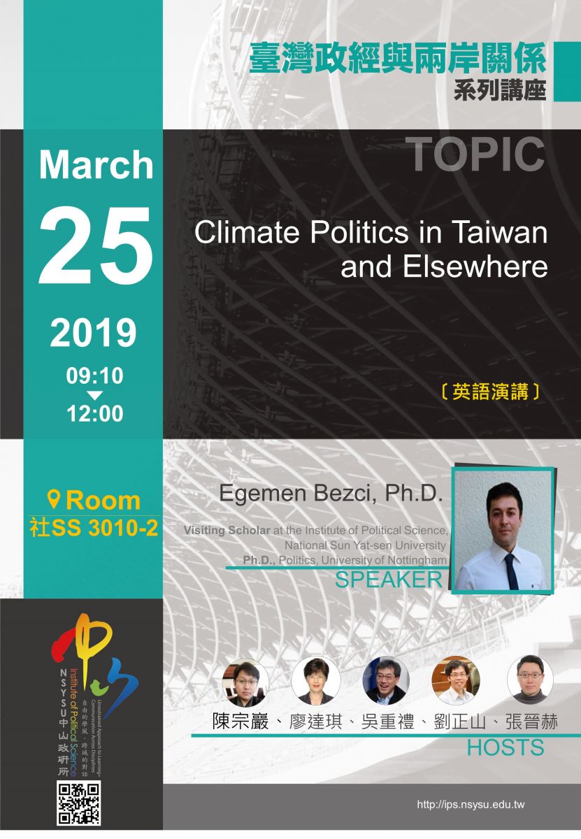 講題: Climate Politics in Taiwan and Elsewhere