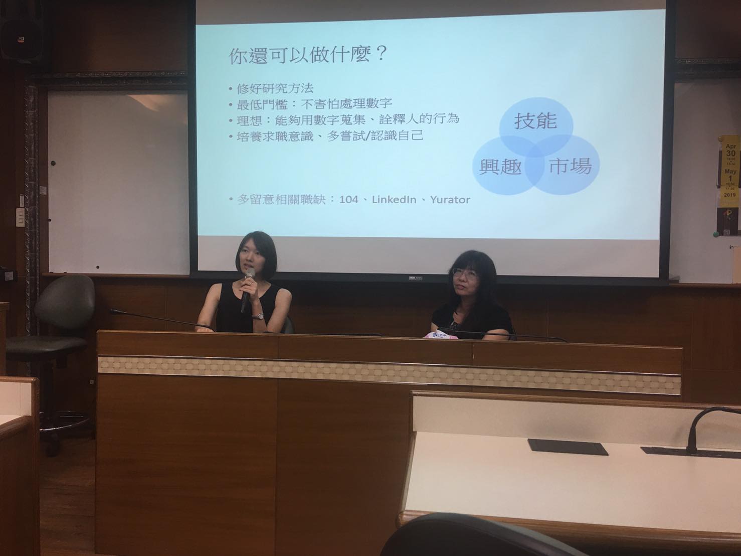 她為同學點破:「問問題是一種專業」,在業界的統計其實並沒有困難。因此在學校足夠的訓練之後,往往可以順利接軌。她進一步鼓勵大家,同學需要學統計,來掌握事實,對抗違背正統民調的(假)民調。在學期修課期間就要提早意識到,如何讓所學成為自己的職場技能。
