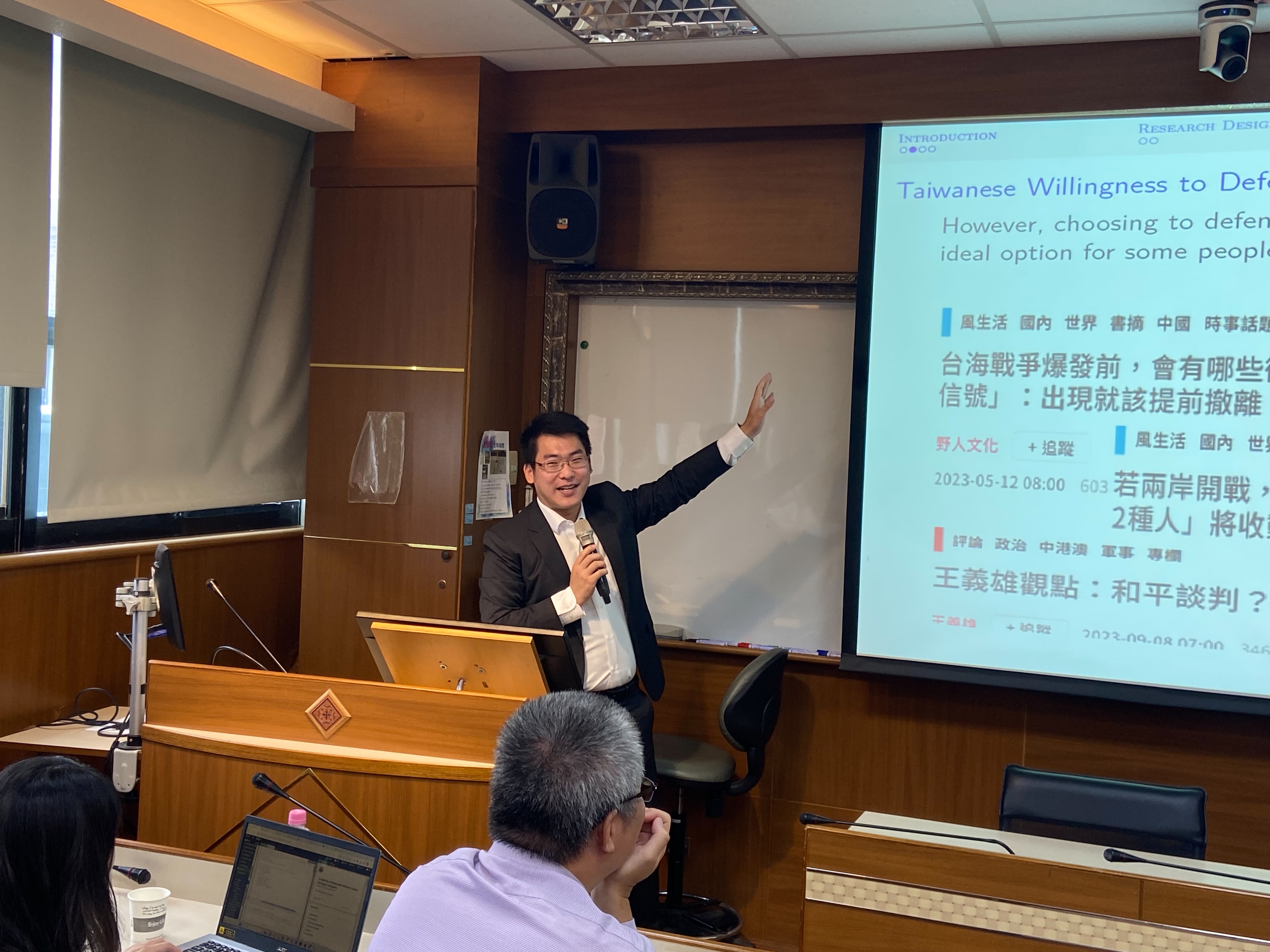 Prof. Huang's presentation focused on determinants of public support for war in Taiwan.It is an attempt to analyze the factors that contribute to support for an assumed war in Taiwan and to explain how these factors work. He used various attributes such as 'Wealth distribution', 'US strategic stance', 'Expected war outcome', 'Taiwanese casualties', 'Taiwan's cost for war', 'Chinese casualties', and 'Chinese cost for war' at each level and presented together. It was interesting to see the methodological clarification of complex factors and the attempt to use them strategically in the analysis. I believe that strategic studies that assume a scenario of Chinese armed intervention in the increasingly tense cross-strait relationship will be useful for policy.