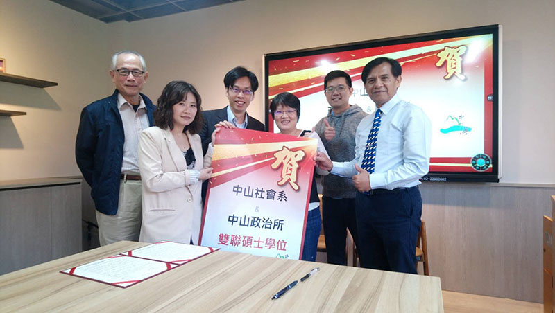 本所與本校社會系於109年1月13日正式簽訂「雙主修論文共同指導」協議書,本次合作旨在結合政治學與社會學兩大專業,本校立足南臺灣,透過兩所學術合作,提供學生在地參與觀察、關注地方弱勢,關注社會變遷、省思社會正義與政策連結,更從本土之研究放眼國際。